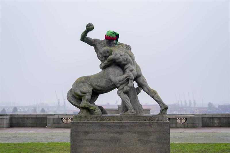 Świątecznie i bajkowo. Czapki elfów na pomnikach
