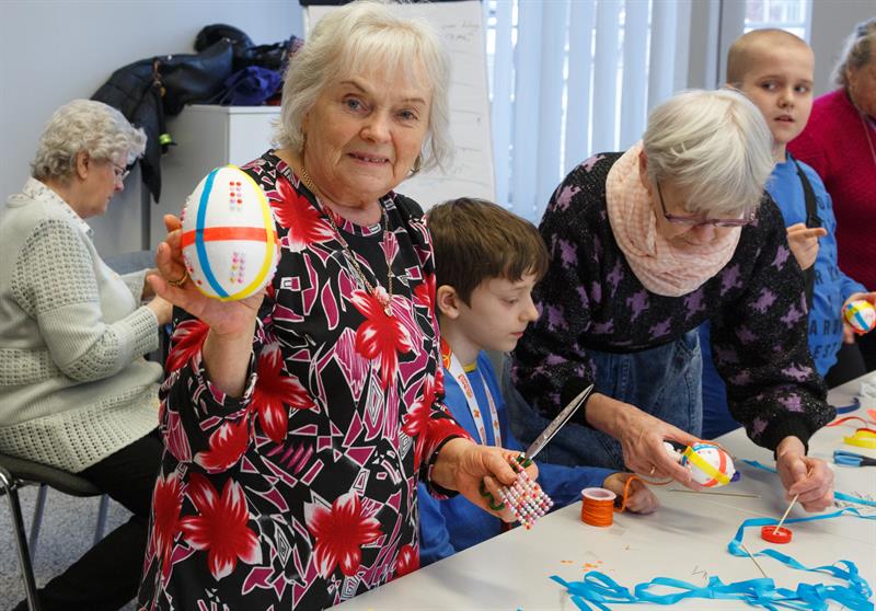 W tymczasowej siedzibie Domu Kultury Słowianin przy ul. Kolumba w Szczecinie w środę 6 kwietnia odbyło się sympatyczne spotkanie - międzypokoleniowe, a nawet międzynarodowe. Panie z sekcji rękodzielniczej „Nitka”, działającej przy Słowianinie, wspólnie z II klasą polsko-ukraińską ze Szkoły Podstawowej Nr 61 wyczarowały świąteczne ozdoby. Dzieci pod okiem seniorek uczyły się sztuki dekoracji wielkanocnej. Każe dziecko otrzymało też od pań jajka robione na szydełku. Na koniec zajęć czekał słodki poczęstunek przygotowany przez rodziców dzieci. - Niewątpliwie była to znakomita lekcja integracji społecznej - podsumowali organizatorzy wydarzenia!