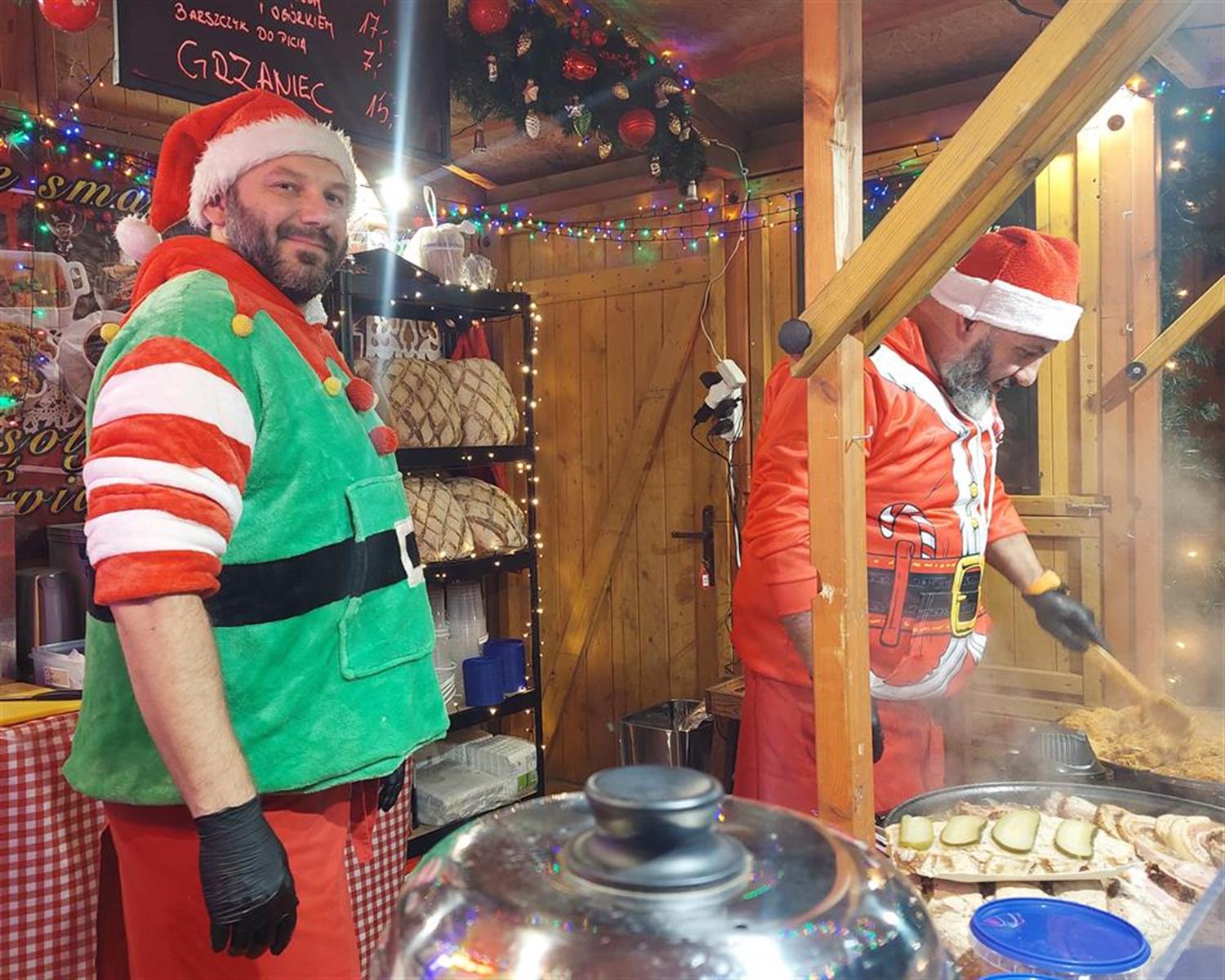 Na jarmarku można się posilić: zjeść pajdę chleba z ogórkiem, zasmakować bigosu i pieczonej kiełbasy, przegryzać frytkami, churrosami, czy naleśnikiem z słodkim albo wytrawnym nadzieniem. Posmakować pączków z... kapustą i grzybami lub o smaku meksykańskim, nasycić się słodkościami - specjałami Szczecińskiej Bezy. Podniebienia najmłodszych na pewno zadowolą owoce w czekoladzie, lizaki przypominające świąteczne i bajkowe postacie oraz pierniki.