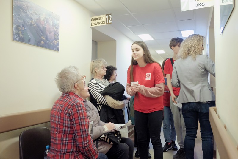 Pacjenci z regionu zostali dowiezieni na badania busami i autokarami przez Caritas Archidiecezji Szczecińsko-Kamieńskiej. W przerwach między wizytami przygotowano dla nich ciepłe napoje i poczęstunek.