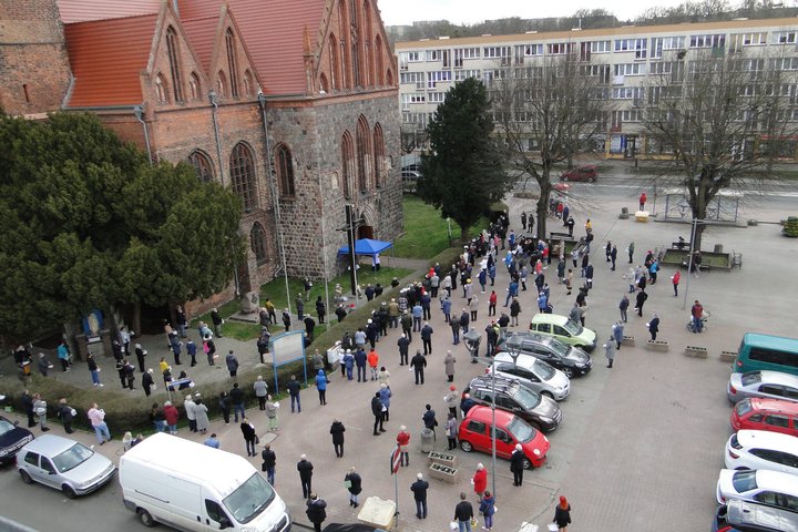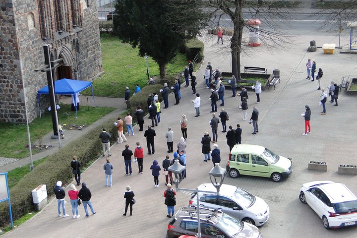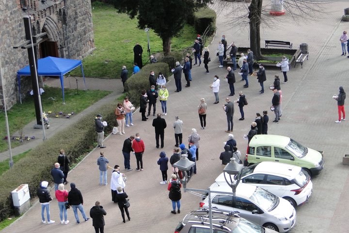 W Wielką Sobotę, co piętnaście minut – począwszy od g. 10 – na zewnątrz świątyni pw. NNMP w Gryfinie odbywa się błogosławieństwo pokarmów na stół wielkanocny. Wierni, zachowując dystans, ustawiają się w pobliżu kościoła na placu Barnima. Święcenie pokarmów potrwa do g. 13.