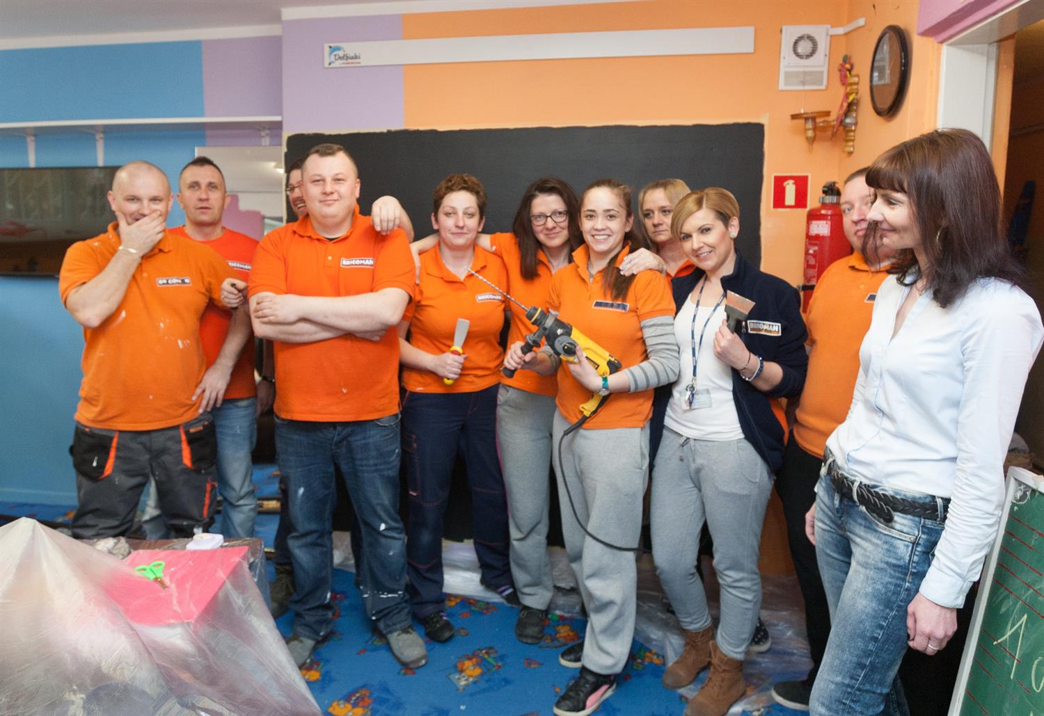 - Tak realizujemy nasz projekt „Wolontariat - odpowiedzialność, która niesie pomoc"- mówi Anna Głowacka, liderka projektu. - To nasz wolontariat pracowniczy. Ludzie z Bricomana sami zadeklarowali chęć ofiarowania swojego czasu i pracy. Dwie, 10- i 8-osobowe, grupy odnowią świetlicę. W jednym pomieszczeniu powstanie ściana - tablica, do jej wykonania użyjemy specjalnej farby tablicowej. Powiesimy też nowe karnisze, a na nich nowe firanki. W kuchni będzie nowa wykładzina. Zamontujemy też przepływowe podgrzewacze wody i wymienimy gniazdka, wtyczki... Wszystkie materiały pochodzą z naszego sklepu. Ich fundatorem jest firma Bricoman.