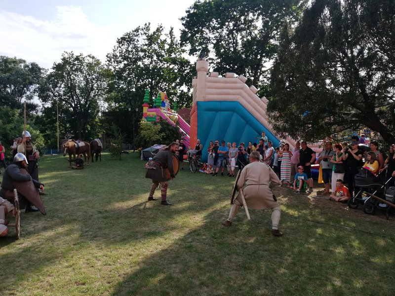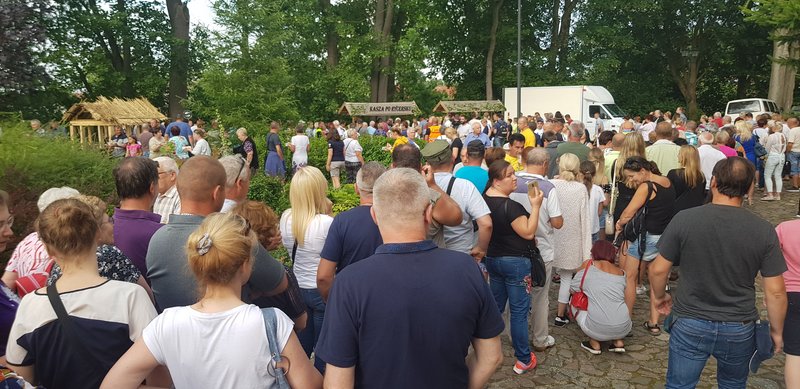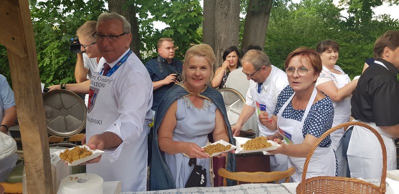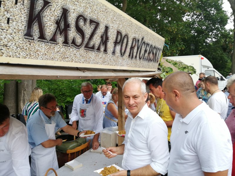 Na terenie ogrodów pałacowych rozpoczął się festyn połączony z jarmarkiem, występami zespołów muzycznych i poczęstunkiem symboliczną miską kaszy, której dokonał m.in. burmistrz w towarzystwie kilku polityków z naszego regionu. Na koniec wystąpił raper Nowator.