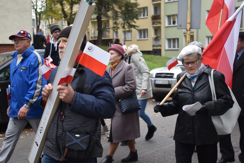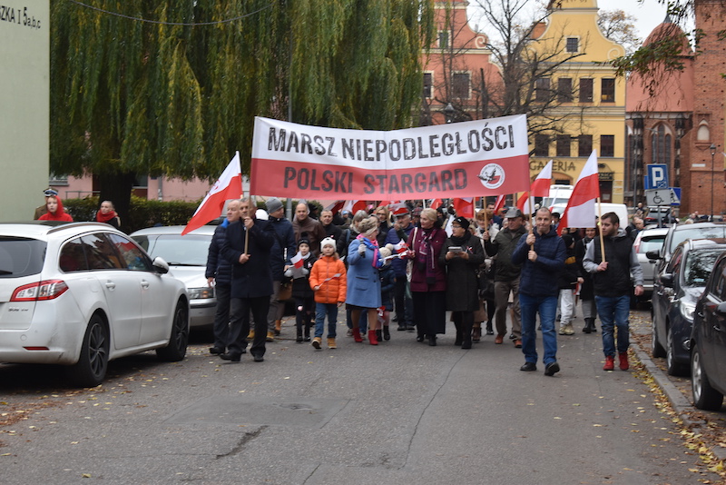 Z placu przed ratuszem wyruszył marsz patriotyczny, którego głównym organizatorem było stowarzyszenie Polski Klub Patriotyczny w Stargardzie. Do udziału w nim nawoływał przez mikrofon przewodniczący Krzysztof Sosin. Ale stargardzianie stojący w kolejce po grochówkę byli niewzruszeni. W marszu wzięło udział kilkadziesiąt osób związanych m.in. ze stowarzyszeniem i Klubem Konfederacja Stargard, a także mieszkańcy. Uczestnicy marszu z flagami i transparentami wyruszyli trasą wiodącą do pomnika Jana Pawła II, przystając po drodze przy pomnikach smoleńskim i Ofiar Sybiru i Katynia.