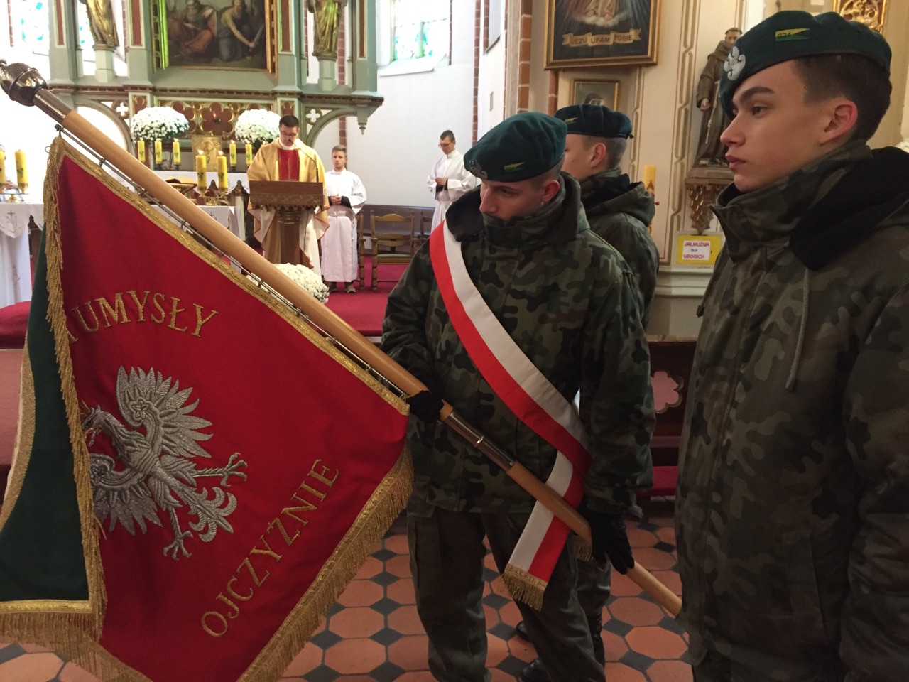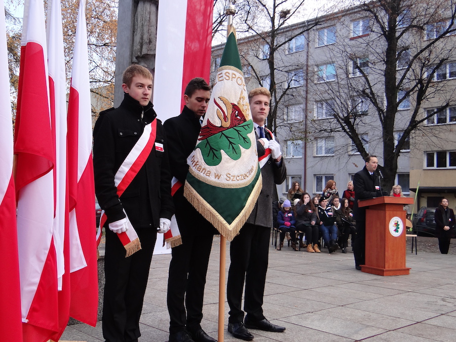 Mszą świętą w intencji ojczyzny o godz. 10 w kościele parafialnym pod wezwaniem Wniebowzięcia Najświętszej Marii Panny w Dąbiu rozpoczęły się piątkowe obchody Narodowego Święta Niepodległości w Szczecinie. W nabożeństwie uczestniczyli uczniowie klas mundurowych Zespołu Szkół nr 2 im. Władysława Orkana przy ul. Portowej. Z ich udziałem po mszy wierni i mieszkańcy przeszli w marszu na pobliski plac przy ul. Emilii Gierczak, gdzie rozpoczęła się manifestacja patriotyczna.