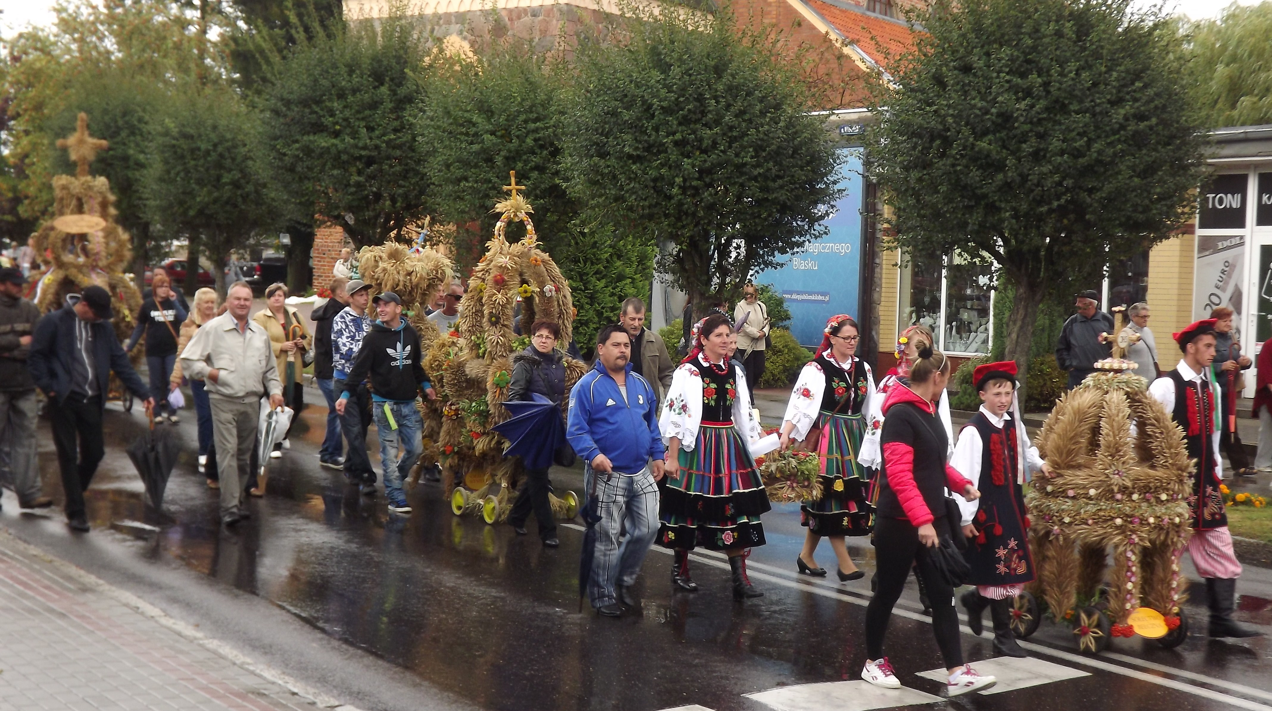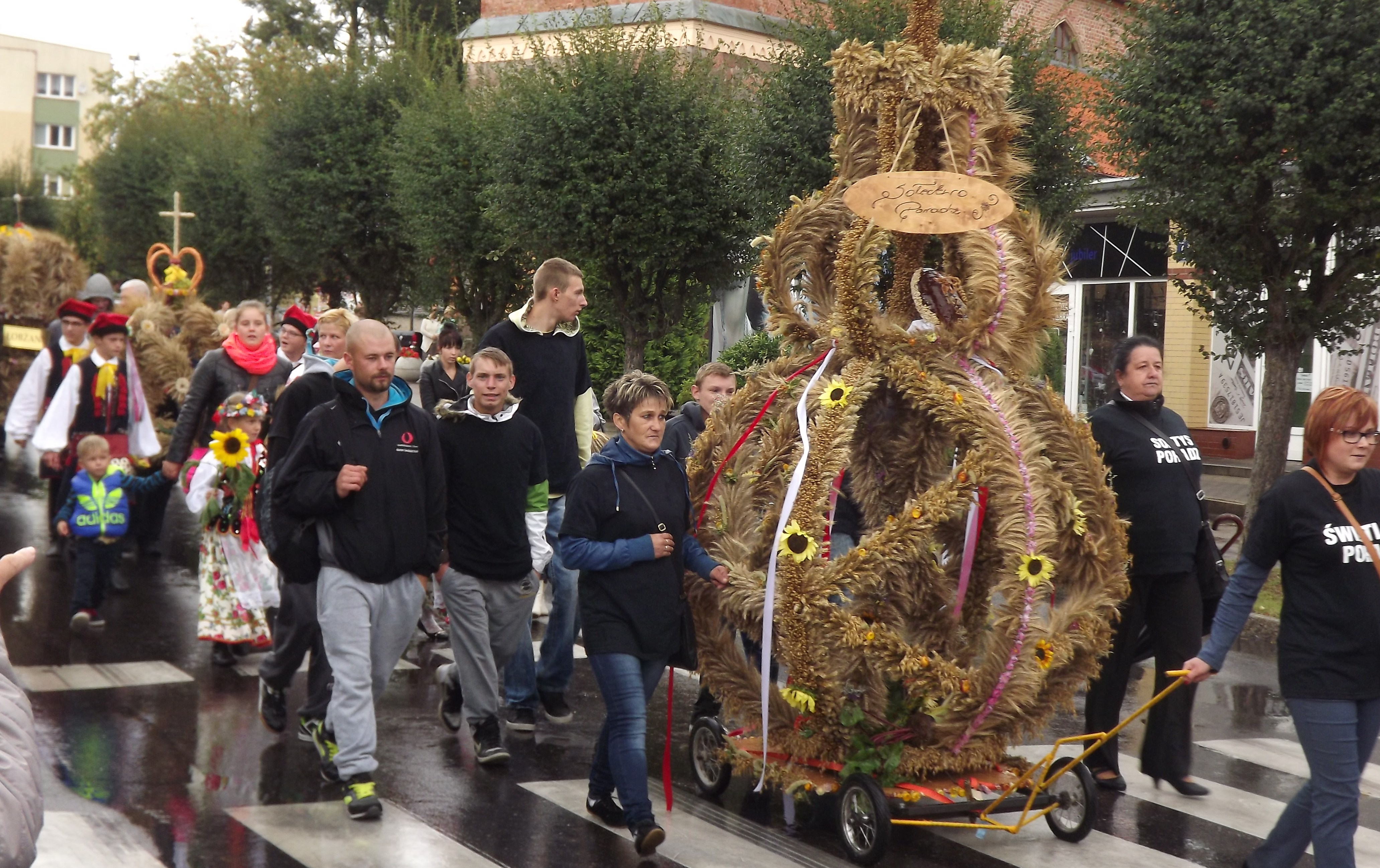 Ulicami miasta przeszedł barwny korowód z wieńcami dożynkowymi oraz orkiestrą dętą na czele.