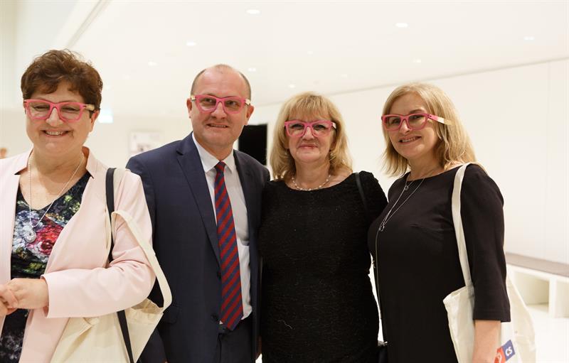 Wieczór w filharmonii zakończył się wspólnym zdjęciem w różowych okularach, które seniorzy dostali w prezencie. Z prośbą, by jak najczęściej patrzyli przez nie na świat.