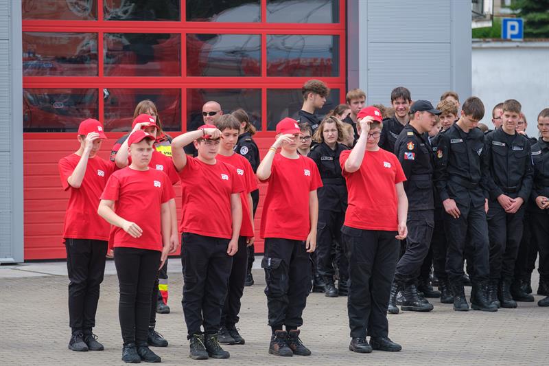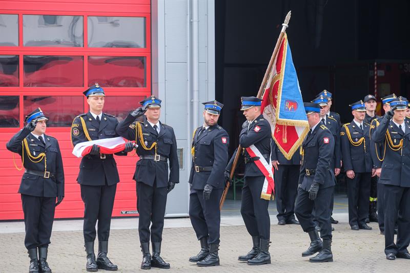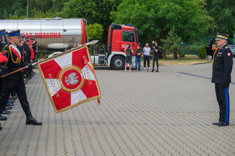 Meldunek Zachodniopomorskiemu Komendantowi Wojewódzkiemu Państwowej Straży Pożarnej, nadbryg. Jarosławowi Tomczykowi, złożył dowódca uroczystości, mł. kpt. Łukasz Adamowicz.