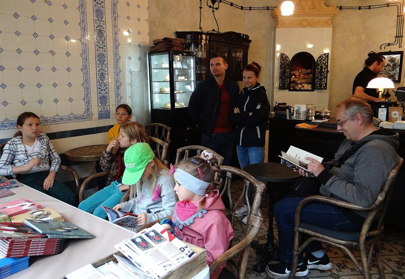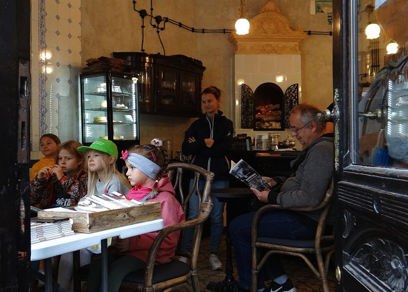 Gdy przewiezionych na platformach 15 klonów w donicach, wreszcie zacumowało przed „Kamienicą w lesie", w gościnnych progach tej klimatycznej kawiarenki z książkami rozpoczął się cykl literackich spotkań, zainicjowanych przez Monikę Szymanik. Najmłodsi wsłuchiwali się w czytane „Zamkowe Opowieści duszka Bogusia" Moniki Wilczyńskiej.