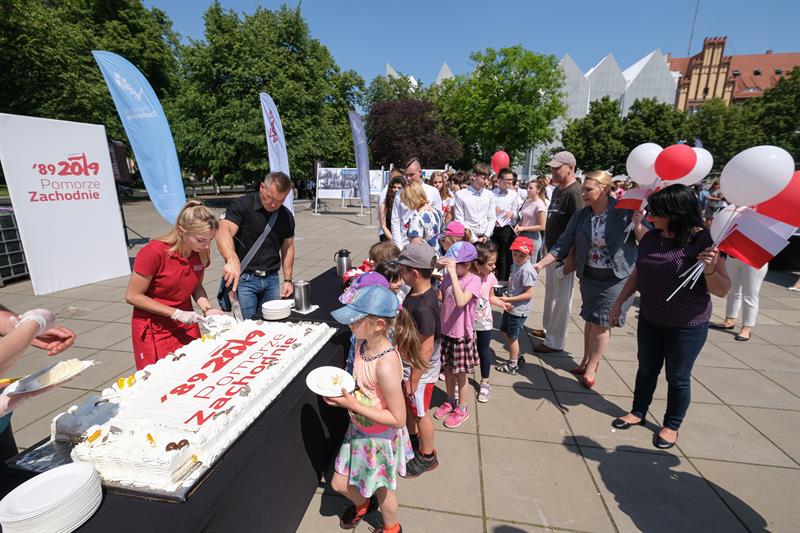 Trzydziestą rocznicę pierwszych częściowo wolnych wyborów z 4 czerwca 1989 roku szczecinianie świętowali na pl. Solidarności. Odśpiewano hymn, była transmisja obchodów z Gdańska na telebimie, przygotowano tort dla uczestników. Obchody trwają dalej.