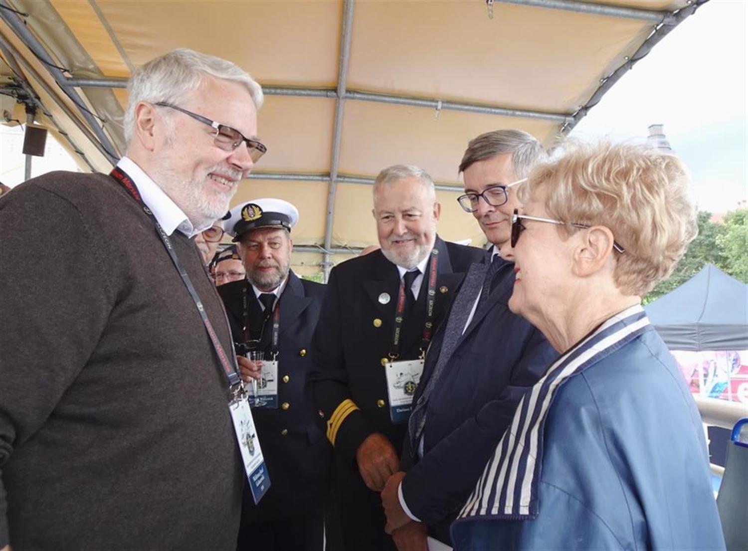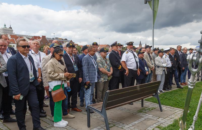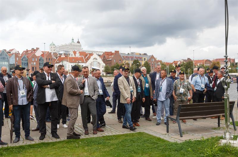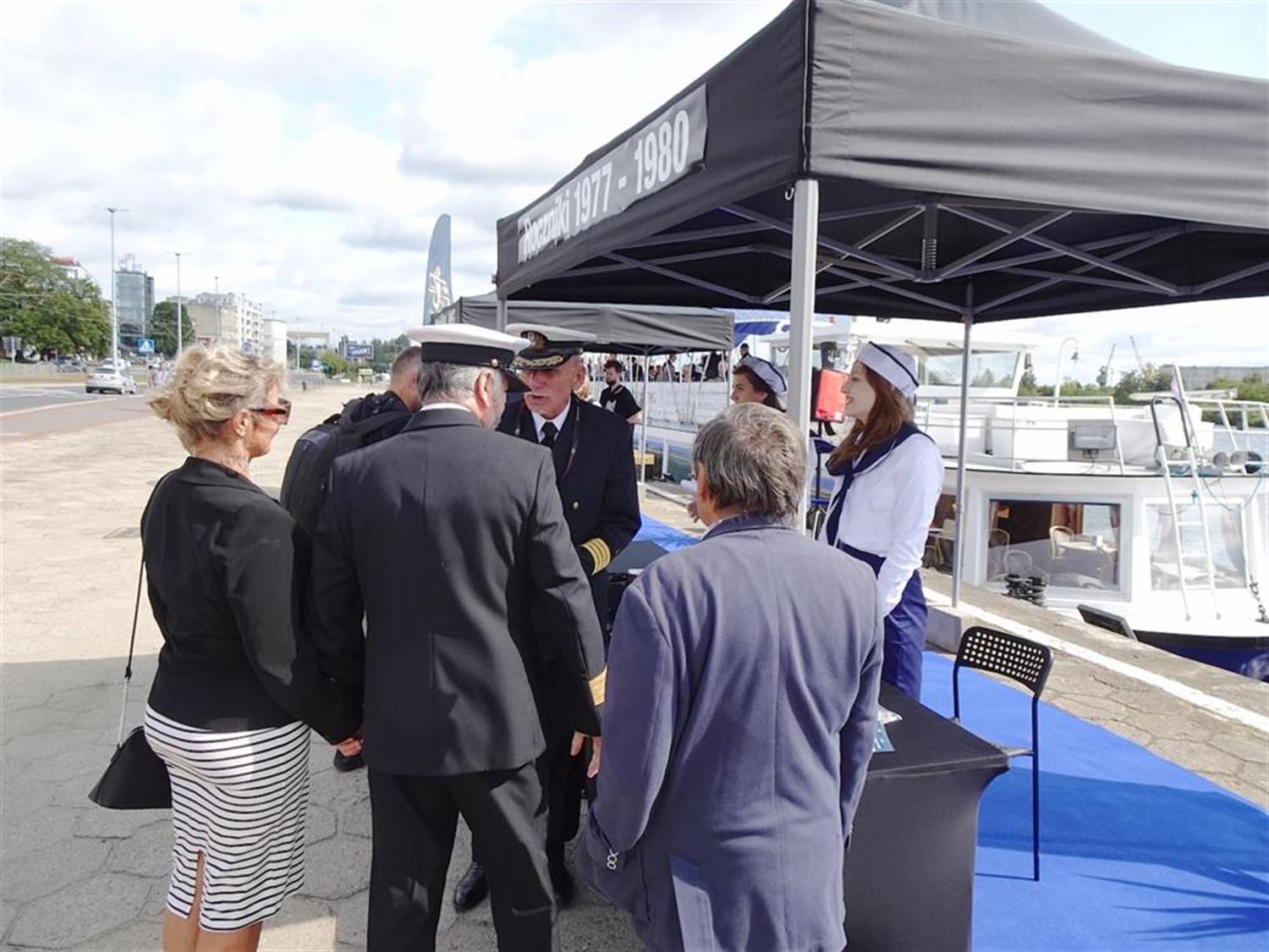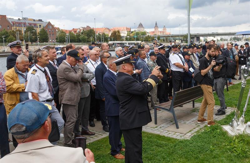 Uczestnicy zjazdu przepłynęli statkami „Sedina” i „Kapitan Cook” (należącymi do kpt. ż.w. Janusza Justa, również absolwenta LM) na drugą stronę Odry i przy maszcie ze statku „Kapitan K. Maciejewicz” pozowali do pamiątkowych zdjęć. Przemawiali: wiceprezydent Szczecina Michał Przepiera, prorektor Politechniki Morskiej Agnieszka Deja oraz dyrektor naczelny PŻM Andrzej Wróblewski.