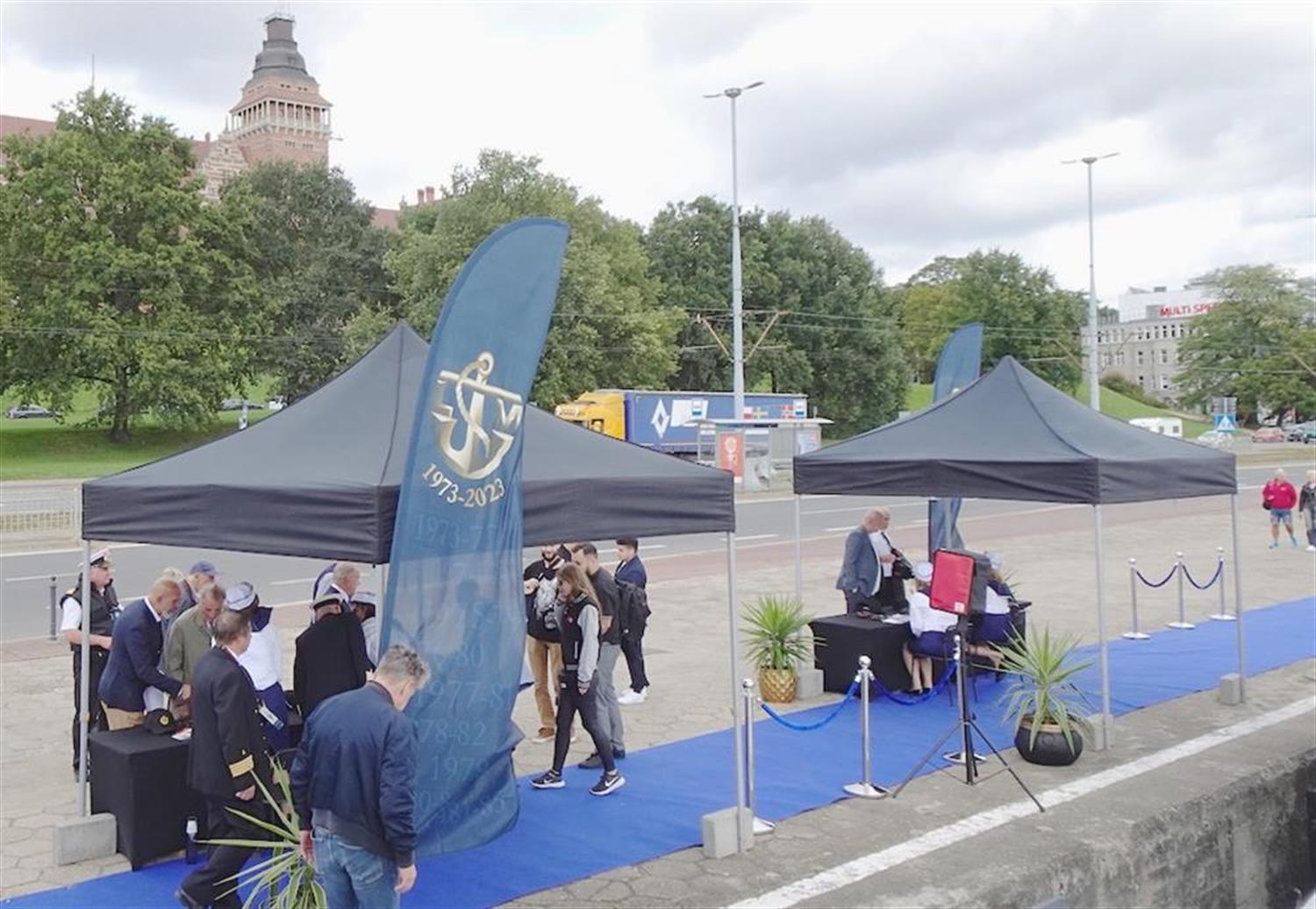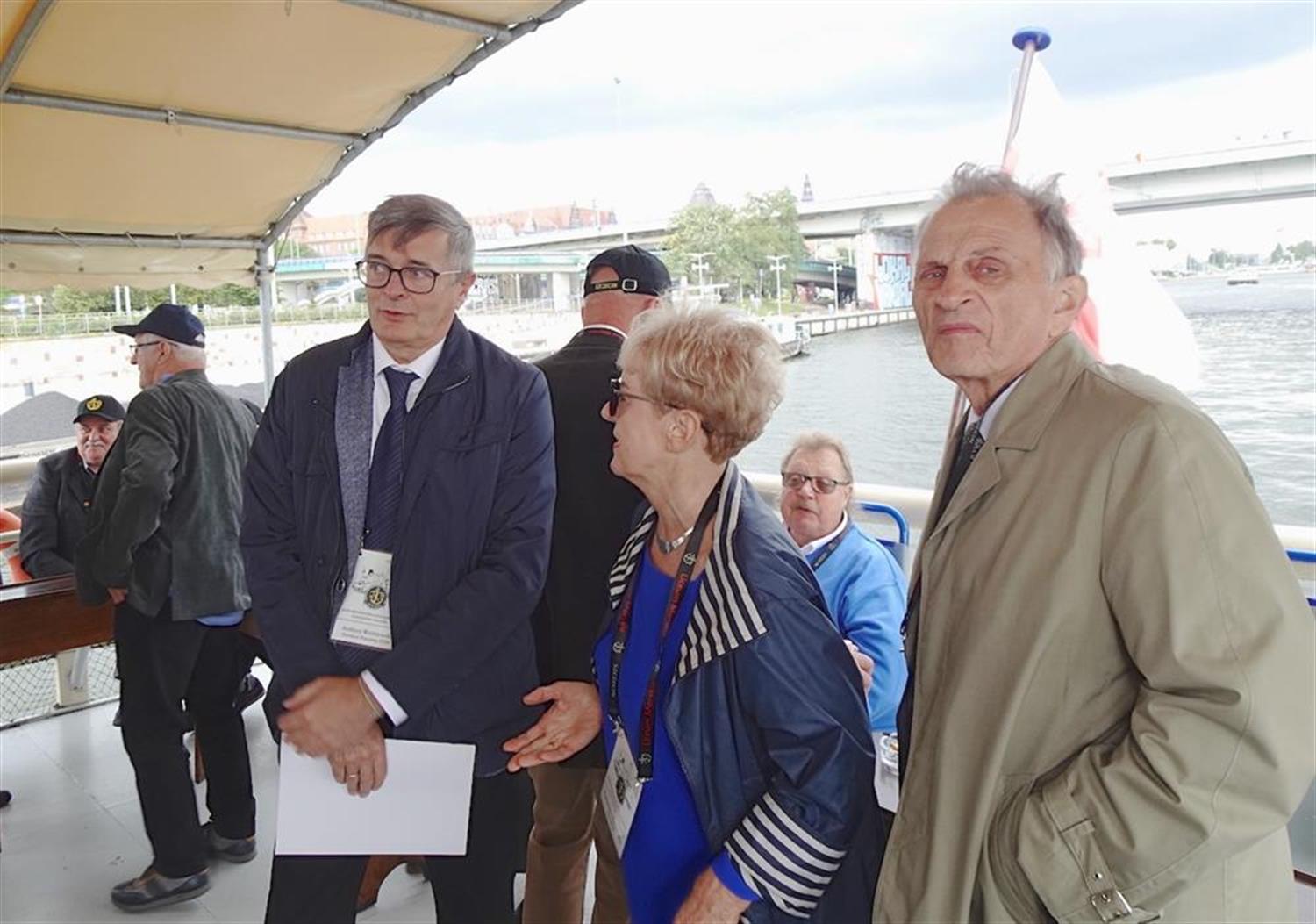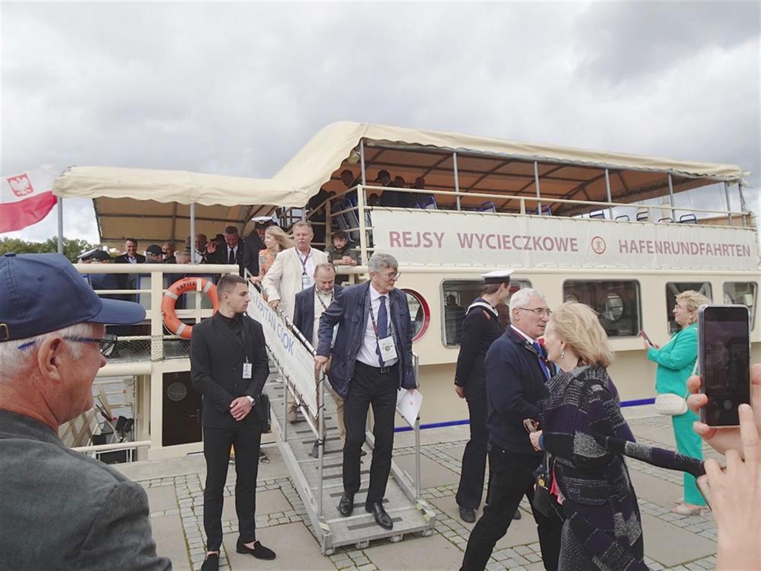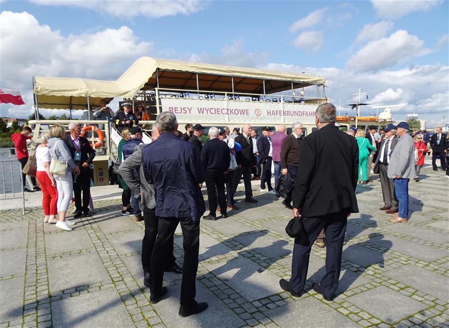 Następnie wszyscy popłynęli w krótki rejs po porcie. Po nim zeszli na nabrzeże Starówka, gdzie powitał ich muzycznie Big Band z Domu Kultury Kolejarza w Stargardzie. Świętowanie kontynuowano w Starej Rzeźni. Tam wspominano szkolne lata, oglądając kroniki, zdjęcia, a także model statku „Kapitan K. Maciejewicz”, wykonany niegdyś przez uczniów. Cześć oddano tym, którzy już odeszli na wieczną wachtę, m.in. wszystkim komendantom Liceum Morskiego.