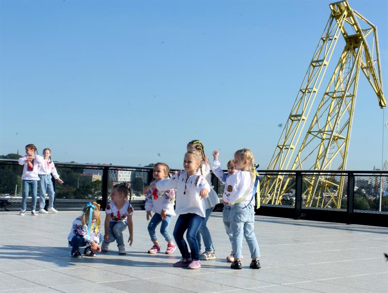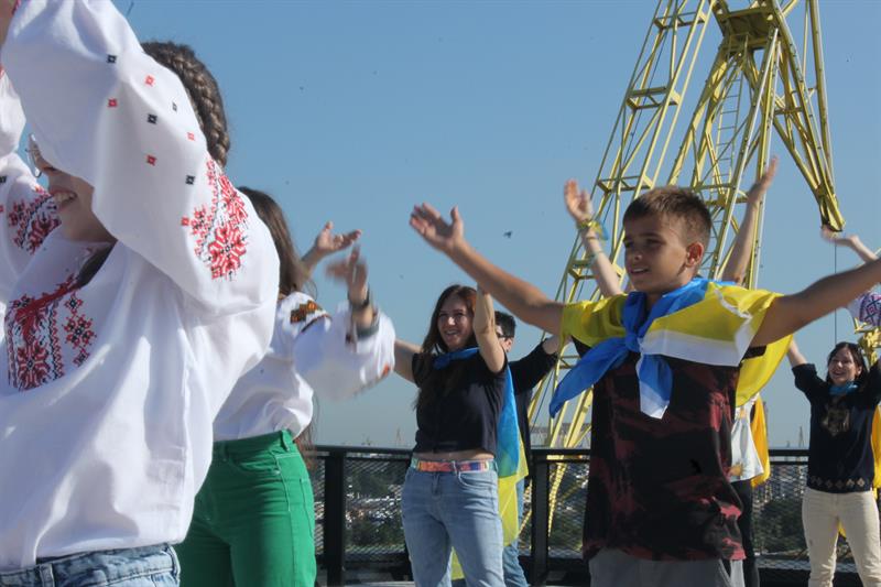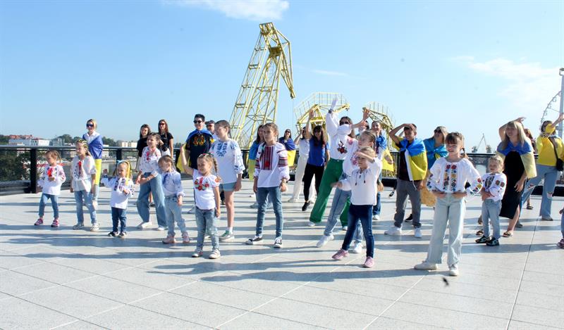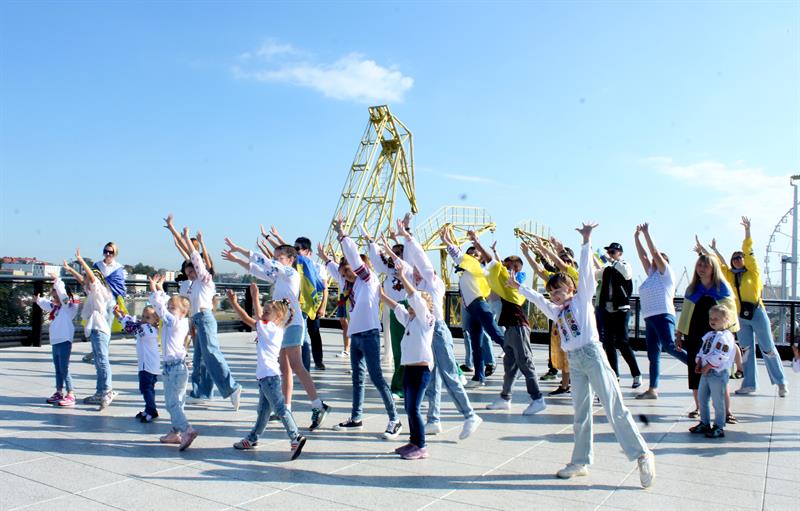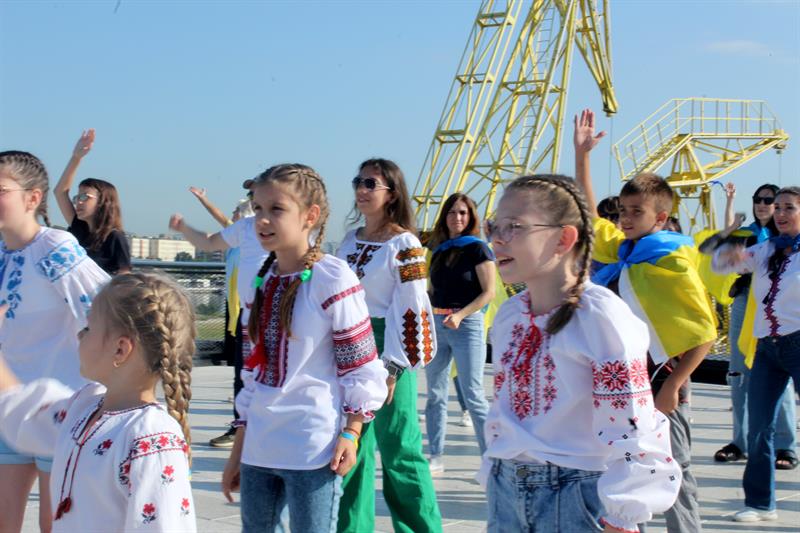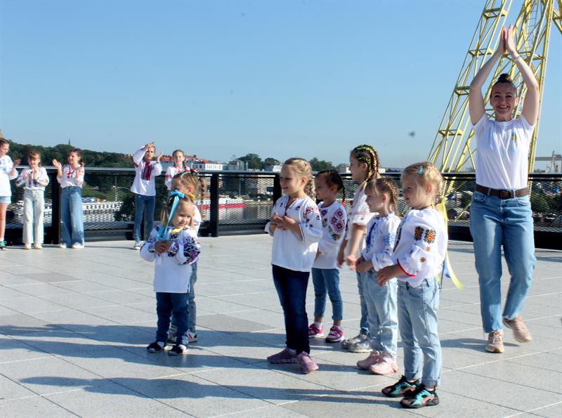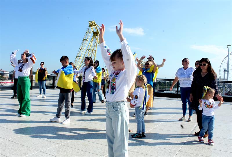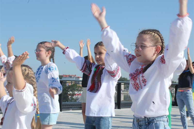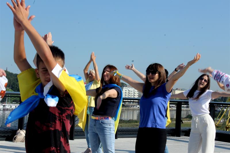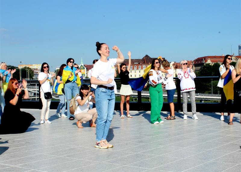 Przyszli ubrani w tradycyjne wyszywanki, czyli haftowane bluzki i koszule, mieli ze sobą także niebiesko-żółte narodowe flagi. Spotkanie rozpoczęło się od pokazu tańca w wykonaniu najmłodszych, do których szybko przyłączyli się także dorośli.
