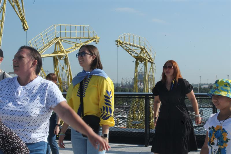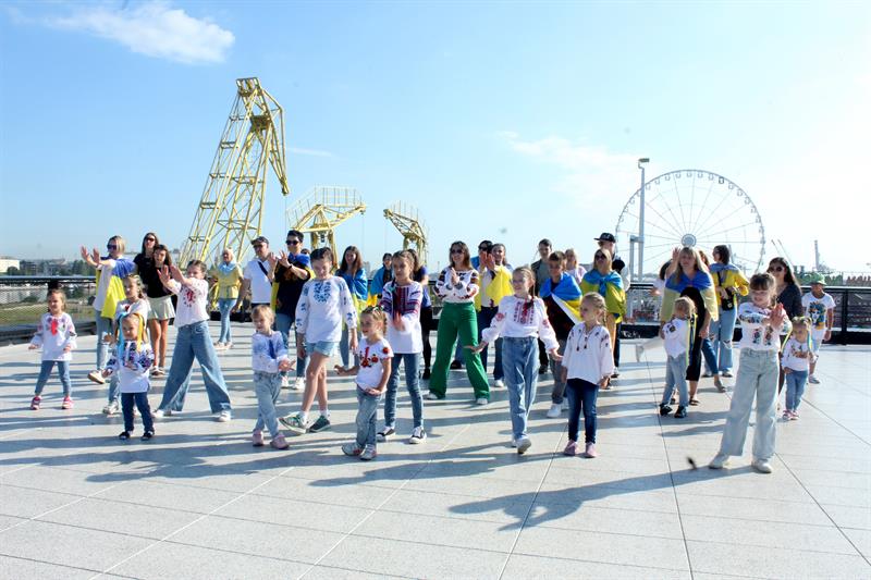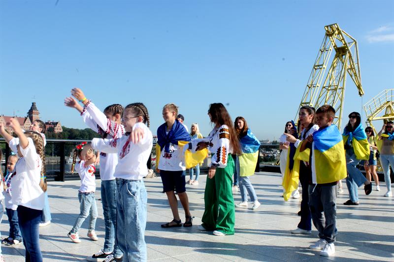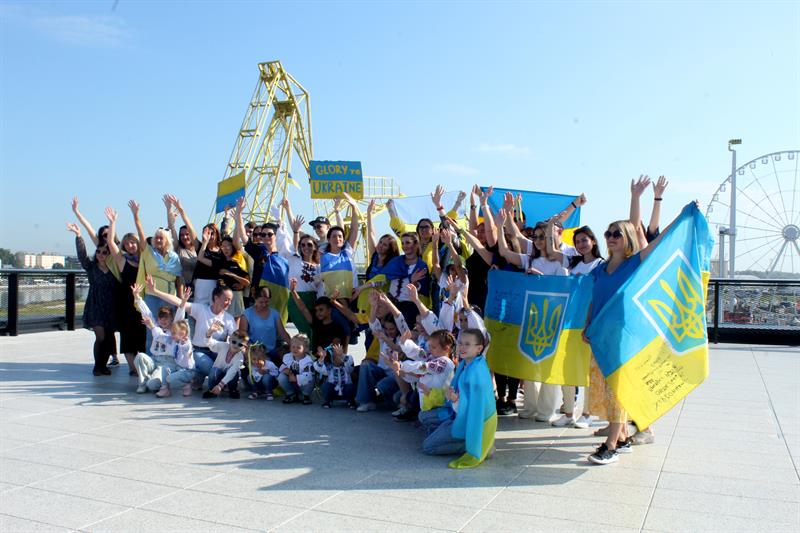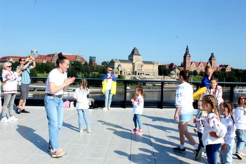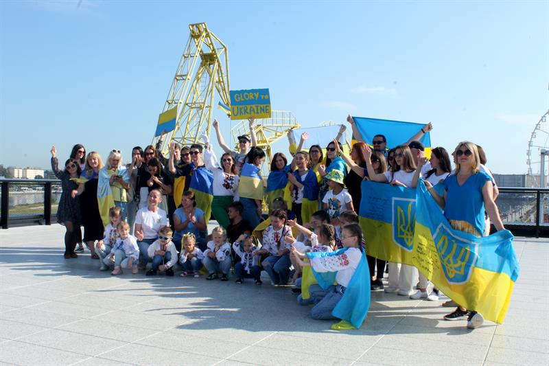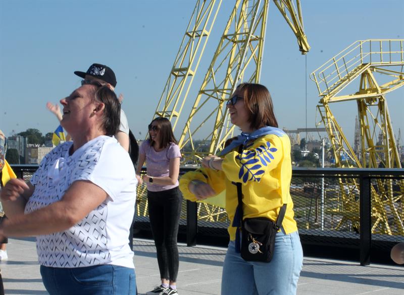 Kilkadziesiąt osób przybyło w środowy poranek na dach Morskiego Centrum Nauki na szczecińskiej Łasztowni. To głównie mieszkający w Szczecinie Ukraińcy, którzy świętowali Dzień Flagi.