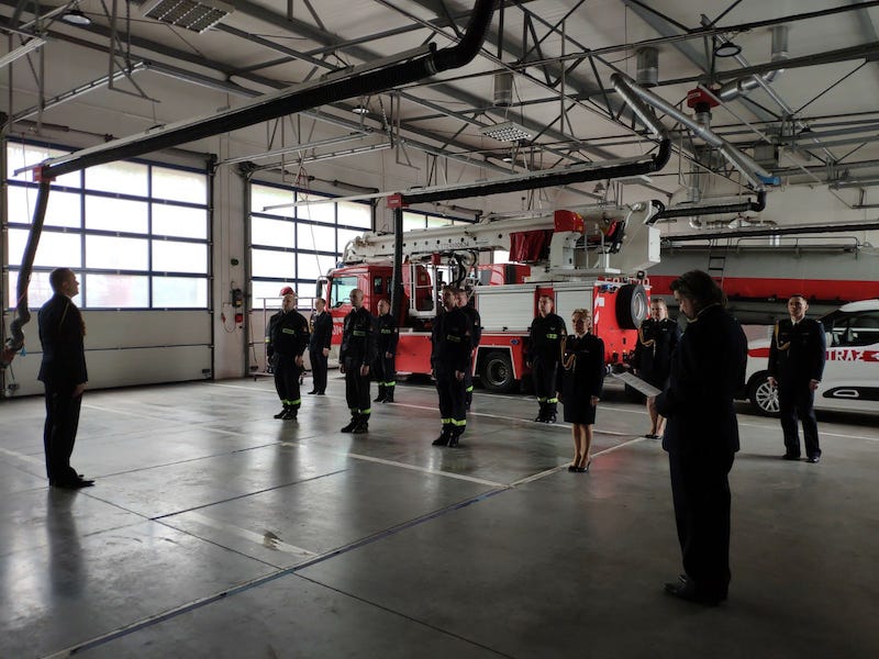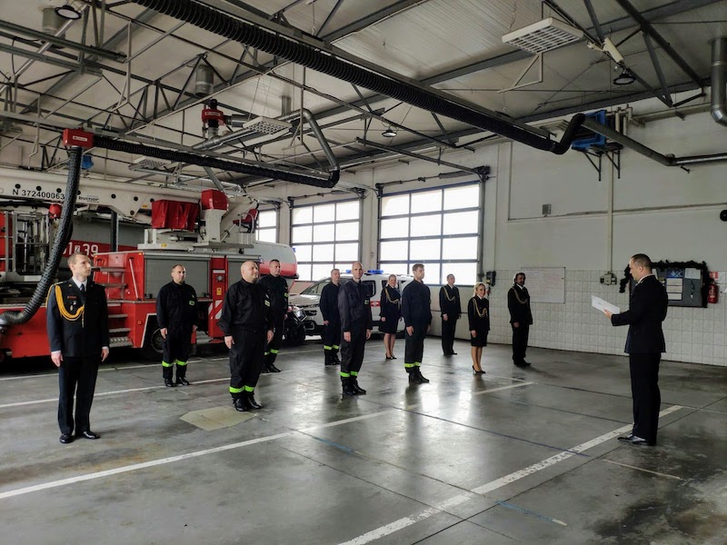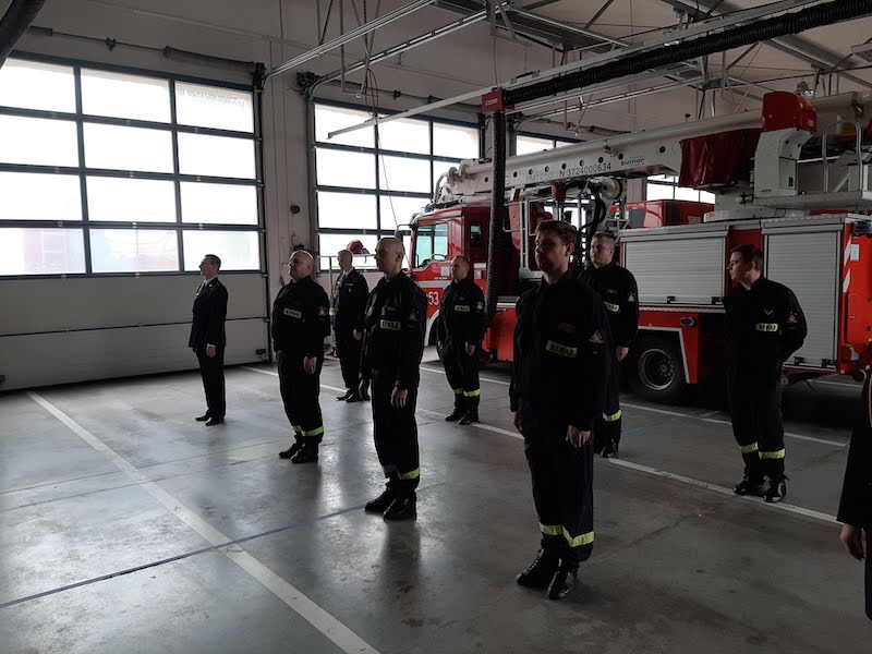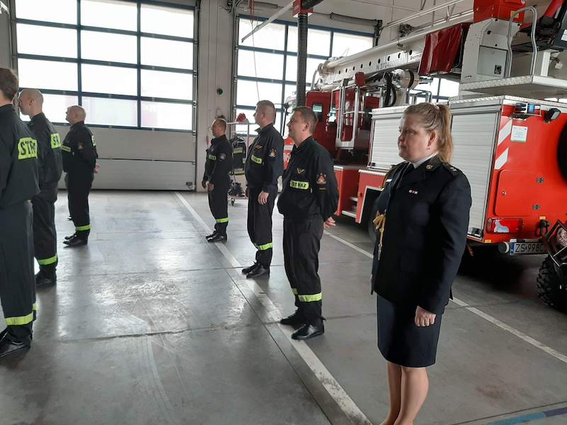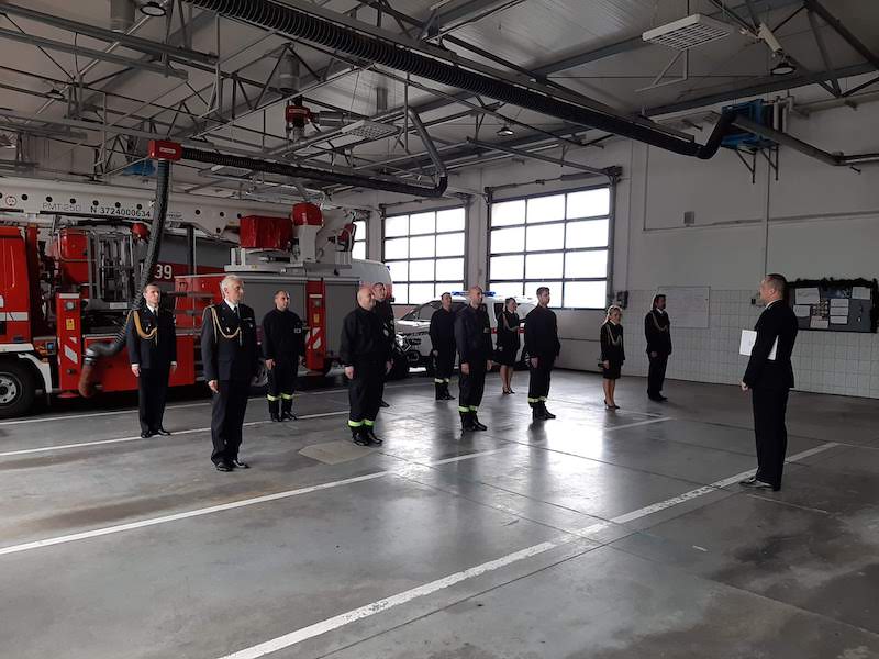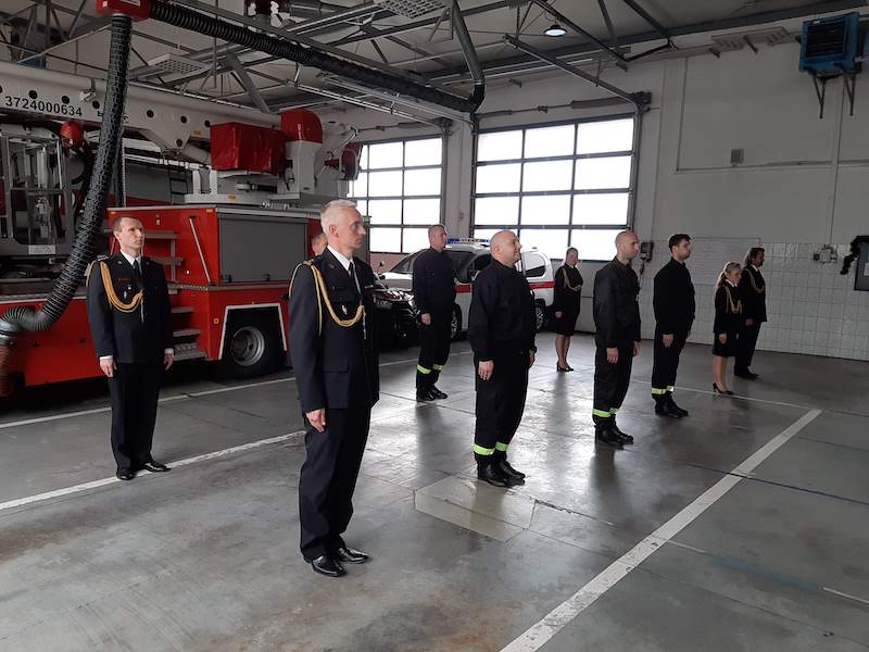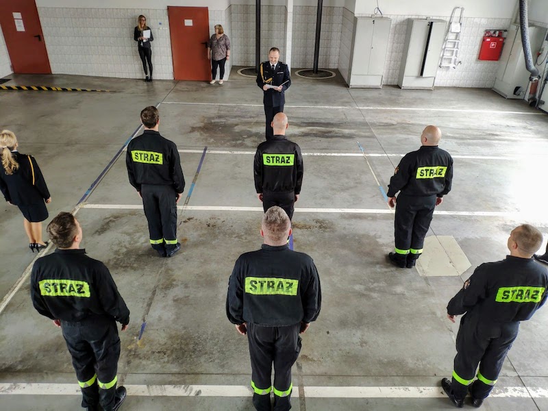 - Uroczysty apel rozpoczęło złożenie meldunku Komendantowi Powiatowemu Państwowej Straży Pożarnej w Policach st. kpt Piotrowi Maciejczykowi. Po przywitaniu funkcjonariuszy odczytano życzenia złożone przez Prezydenta Rzeczypospolitej Polskiej Andrzeja Dudę - powiedział mł. bryg. mgr inż. Piotr Tuzimek, oficer prasowy Komendy Powiatowej Państwowej Straży Pożarnej w Policach. - Komendant Powiatowy po krótkim podsumowaniu poprzedniego roku pracy podziękował za dotychczasową służbę, w szczególny sposób akcentując widoczne zaangażowanie strażaków w działania związane z ograniczaniem rozprzestrzeniania się koronawirusa.