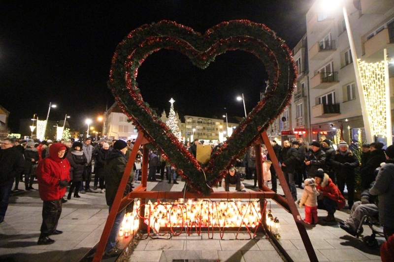 Świnoujścianie na placu Wolności zebrali się, żeby oddać hołd Pawłowi Adamowiczowi, prezydentowi Gdańska. Pod wielkim sercem płonie obecnie wiele zniczy. Przemawiał również Janusz Żmurkiewicz, prezydent Świnoujścia.