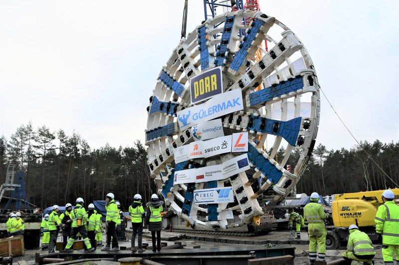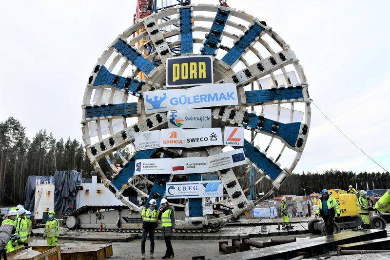 We wtorek (12 stycznia) ogromne dźwigi opuściły głowicę urabiającą do komory startowej, gdzie maszyna TBM rozpocznie drążenie tunelu pod Świną. Tarcza ma 13,46 metrów średnicy i waży 280 ton. Wcześniej została zmontowana na powierzchni, przy szybie startowym. Już w marcu rozpocznie wiercenie tunelu pod dnem Świny.