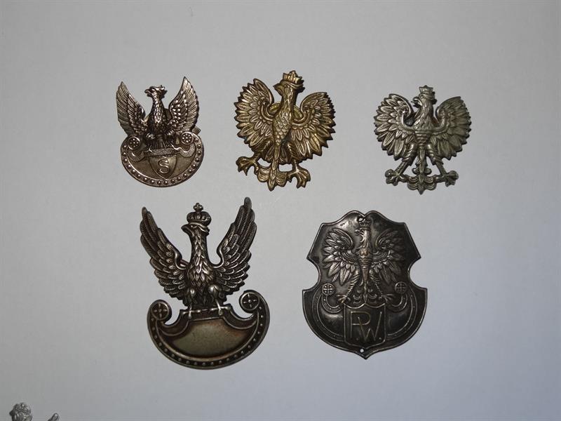 Oprócz przedwojennych orłów wojskowych noszono właściwie wszystkie typy godeł, jakie były dostępne: policyjne, urzędnicze, pocztowe, szkolne, emblematy przysposobienia wojskowego, strzeleckie.