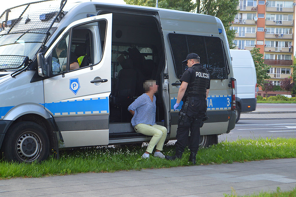 Citroen na niemieckich rejestracjach uderzył w opla, którym jechała mieszkanka Świnoujścia. Na miejsce przyjechali ratownicy, którzy udzielili pomocy poszkodowanej świnoujściance. Tymczasem Niemka awanturowała się. Policjanci chcieli załagodzić sytuację, ale sprawczyni kolizji nie tylko się nie uspokoiła, ale nagle rzuciła się z rękami na policjantkę. Rozpoczęła się szarpanina. Po chwili 41-latka została obezwładniona i skuta kajdankami.