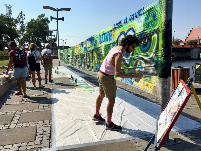 - Z miłością, dobrem, pokojem, sercem. Zbudowany z kolorów i zasady love is love. Jak widać z obrazu, jaki powstał podczas wspólnego tworzenia graffiti w trakcie naszej akcji - relacjonuje Bogna Czałczyńska, współorganizatorka wydarzenia. - Ludzie wpisywali w ten symboliczny obraz to, jak chcą widzieć swoje miasto i bliską im społeczność, a czego wciąż jest wokół nas mało, zbyt mało.