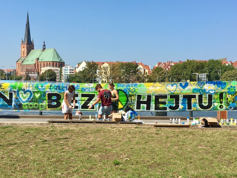 "Szczecin bez hejtu" zyskał ogromne zainteresowanie. Nie tylko lokalnego środowiska miejskich aktywistów, ale również międzynarodowej społeczności, uczestniczącej w projekcie Erasmus. Stąd obecność w trakcie sobotniego wydarzenia jego greckiej reprezentacji.