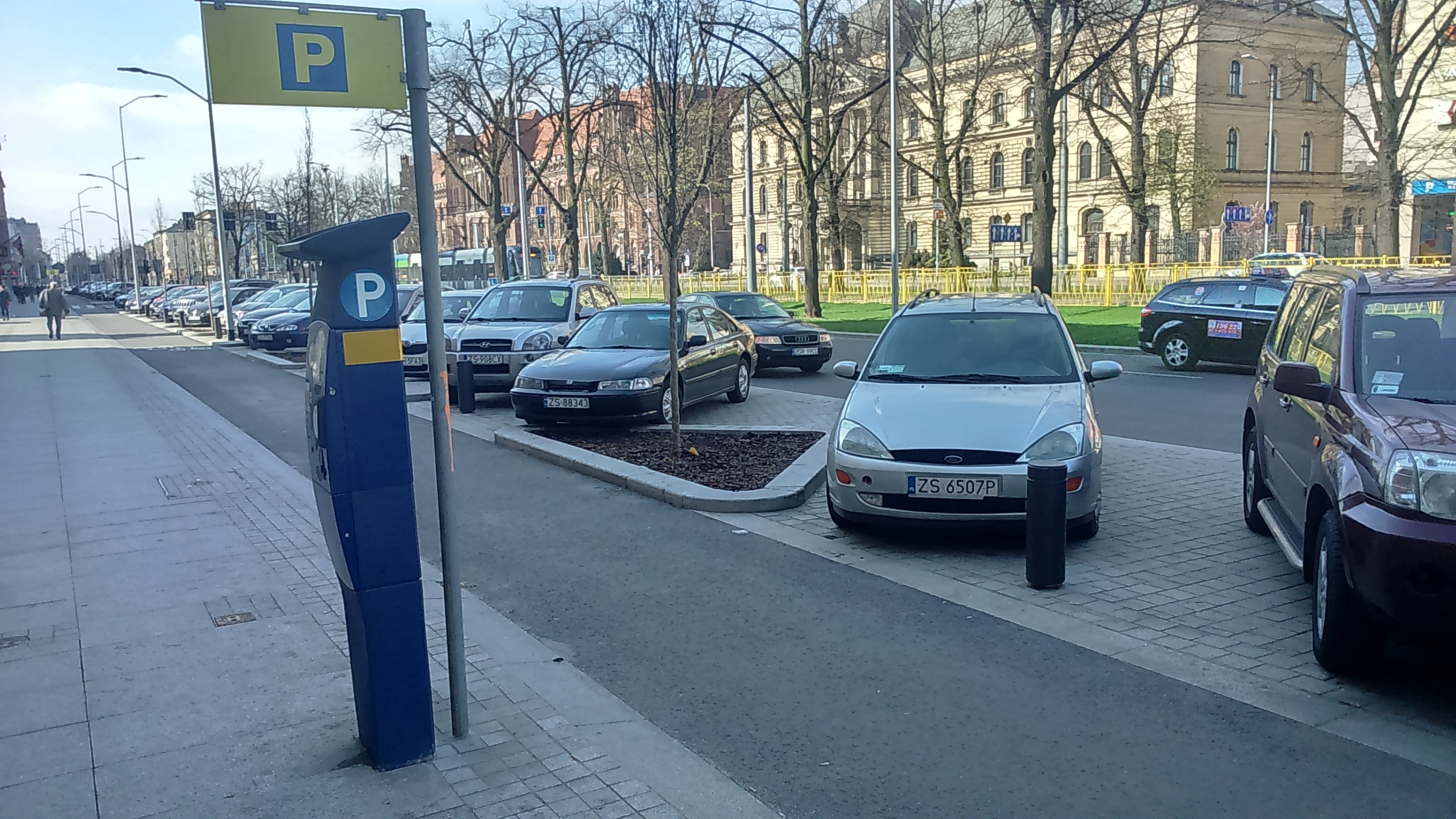 Dwadzieścia dwa lata temu zarząd miasta Szczecina podjął uchwałę w sprawie utworzenia strefy płatnego parkowania (SPP). Pomysł był dobry, ale płatnych miejsc parkingowych (dziś jest ich w Szczecinie ok. 7,9 tysięcy) zamiast przybywać - systematycznie ubywa. W wyniku reorganizacji ruchu kołowego, czyli głównie poprzez budowę ścieżek rowerowych - w ostatnim czasie zniknęło prawie 600 miejsc postojowych. Ma to również swój wymiar finansowy - Szczecin ma obecnie ze strefy płatnego parkowania wpływy mniejsze o prawie 800 tys. zł. Na zdjęciu: Plac Żołnierza. Zlikwidowano wiele miejsc parkingowych i nakazano kierowcom skręcać w ul. Mariacką. Na Korsarzy nie ma wjazdu.
