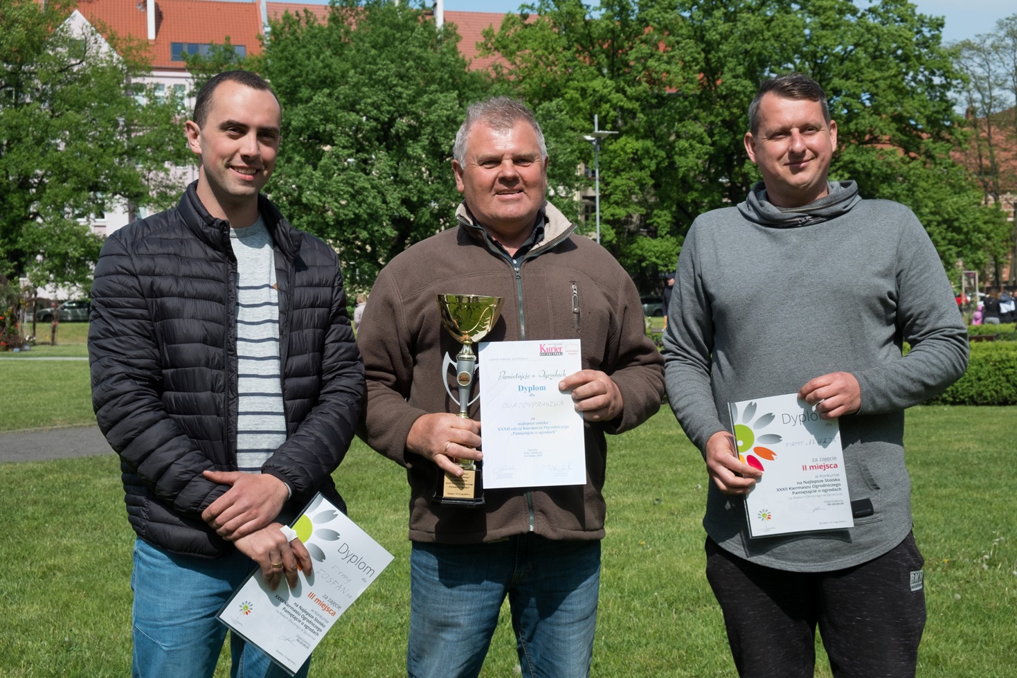 „Pamiętajcie o ogrodach" to było najważniejsze weekendowe (14-15 maja) wydarzenie zielonego Szczecina, zorganizowane przez FM Szczecin, a pod patronatem medialnym "Kuriera Szczecińskiego". Nasza redakcja była również fundatorem nagrody głównej kiermaszu ogrodniczego - Pucharu KURIERA dla najlepszego wystawcy i najefektowniej zaaranżowanego stoiska (zwycięzcy na zdjęciu). O przyznaniu prestiżowego lauru zdecydowali Czytelnicy, biorąc udział w głosowaniu. Pierwsze miejsce zdobyła niezrównana ekspozycja efektownych iglaków, czyli firma Sławomira Jasińskiego - OGRODY PRASZKA. II lokatę w rywalizacji zajęła "Iluzja" Patryka Przytuły z Zielonej Góry, specjalizująca się w produkcji krzewów ozdobnych. Natomiast miejsce III przypadło szczecińskiemu Fosfanowi SA - producentowi nawozów. Gratulujemy uznania Czytelników i prestiżowego sukcesu.