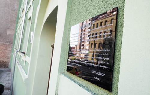 tego potwora, dla pamięci jego potwornych zbrodni ODNOWIONO TEN BUDYNEK. Co to jest ART - BASEMENT podpisane na tej tablicy? CBA, rusz się.