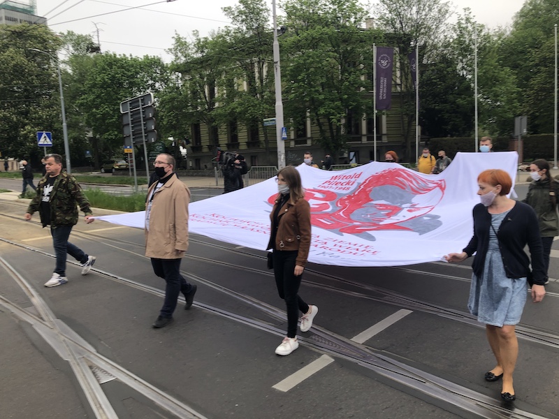 Szczecińska Fundacja Patriotyczna imienia Witolda Pileckiego w czwartek, czyli w 120. rocznicę urodzin rotmistrza, na placu Szarych Szeregów zaprezentowała kilkumetrowy portret "ochotnika do Auschwitz". A potem członkowie fundacji przemaszerowali z tym portretem przez centrum miasta.