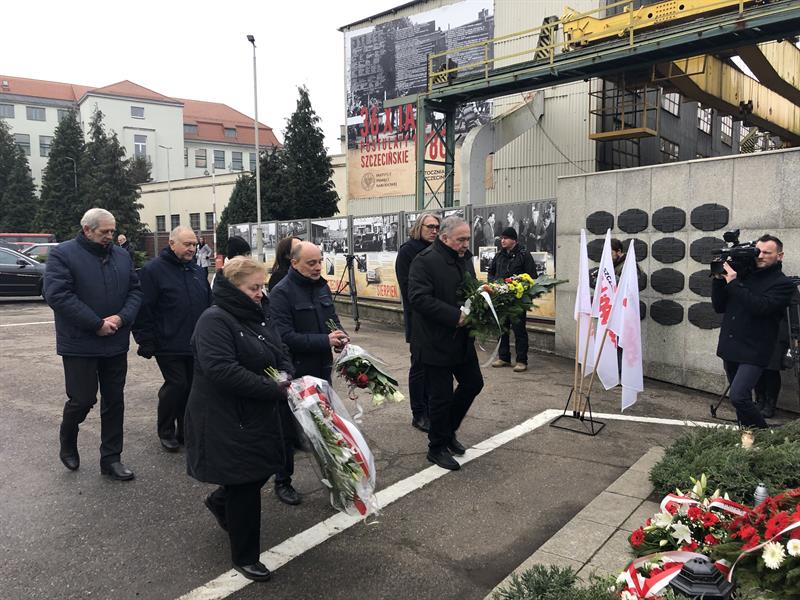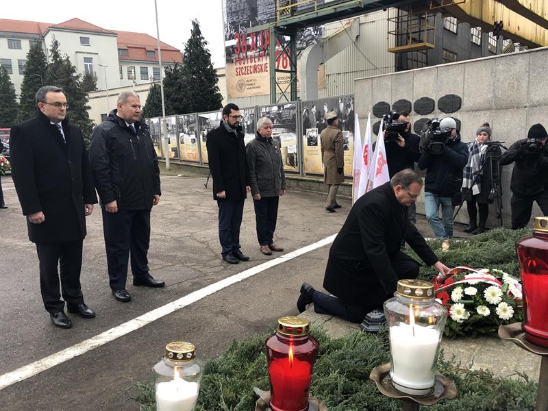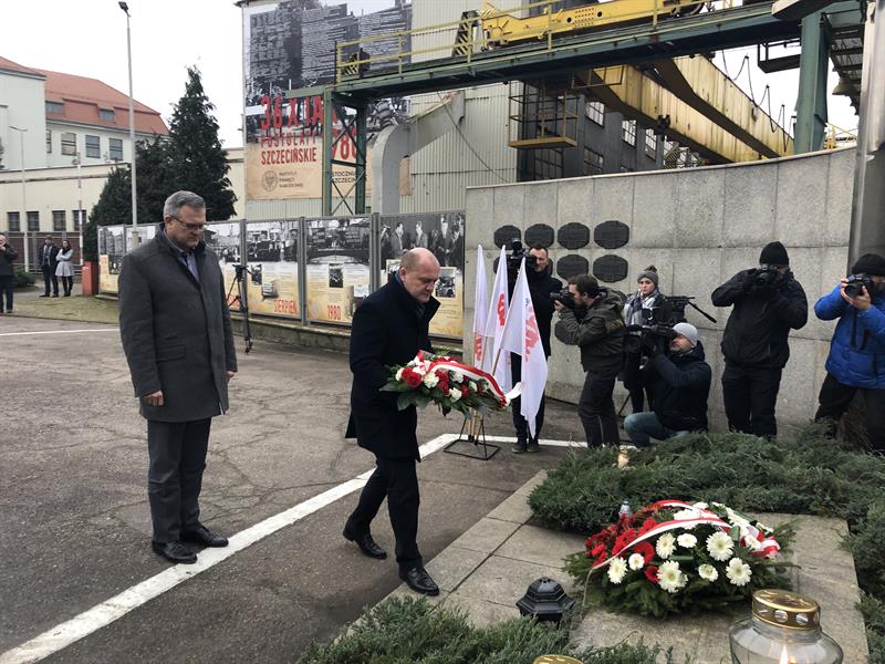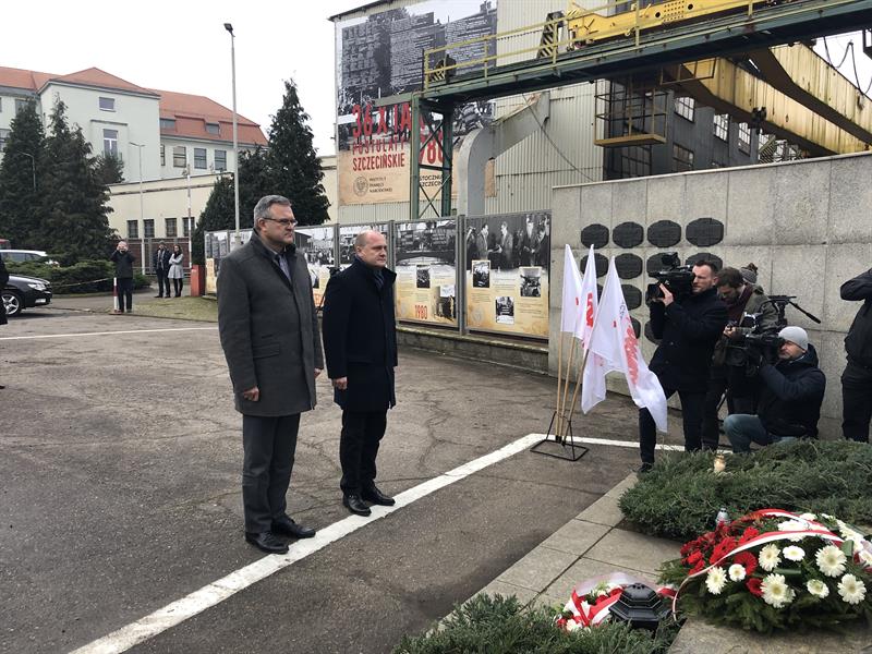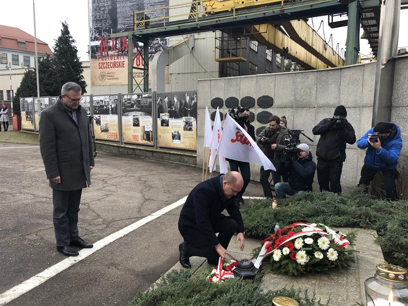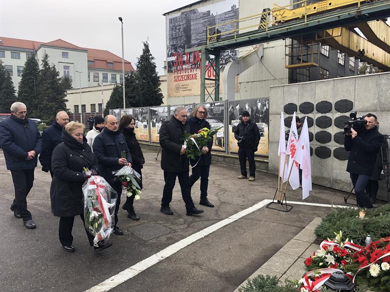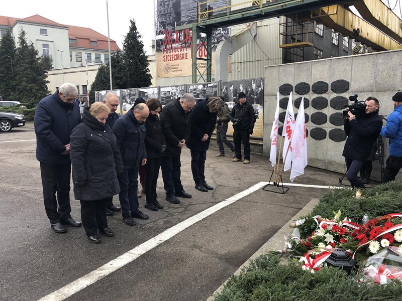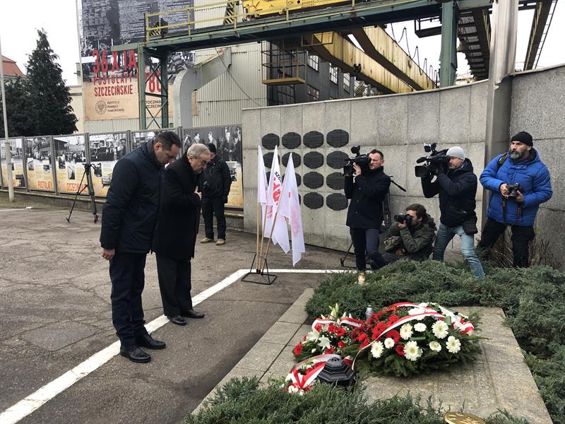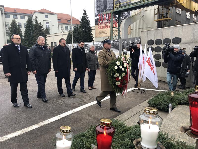 Szef Urzędu do Spraw Kombatantów i Osób Represjonowanych Jan Kasprzyk, wojewoda zachodniopomorski Tomasz Hinc, prezydent miasta Piotr Krzystek oraz przewodniczący Zarządu Regionu NSZZ "Solidarność" Pomorza Zachodniego Mieczysław Jurek oddali hołd ofiarom stanu wojennego. Pamięć tych tragicznych wydarzeń uczcili również m.in. posłowie Michał Jach i Leszek Dobrzyński, zastępca prezydenta miasta Krzysztof Soska oraz działacz opozycji demokratycznej w okresie PRL Kazimierz Drzazga.