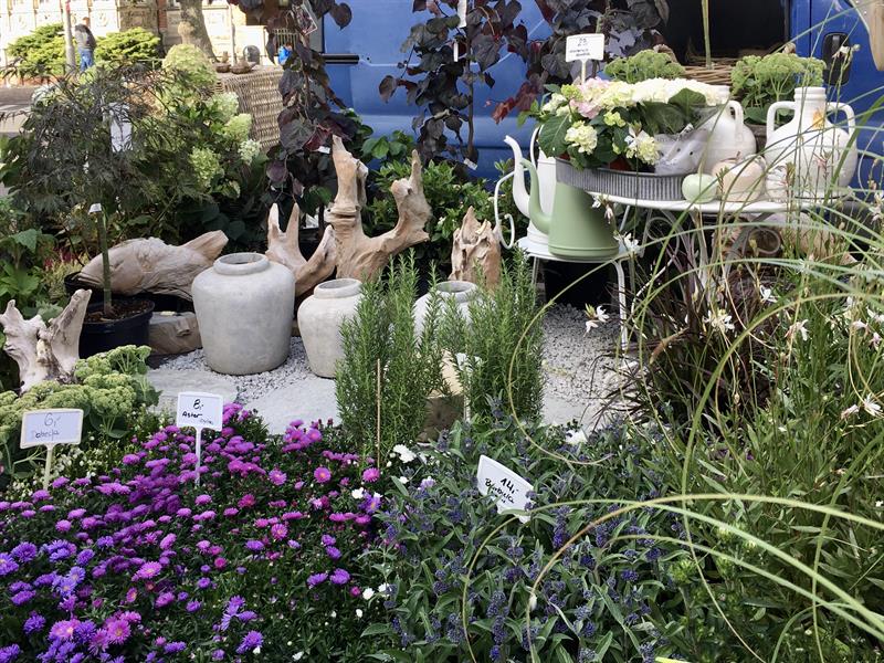 Na zdjęciu: Podczas kiermaszu uwagę przyciągały dywany z wrzosów, hortensje w odmianach i niezwykle efektownie kwitnące trawy. Jednak nie mniejszym powodzeniem cieszyły się byliny aranżowane w jakże modnym ostatnio stylach: naturalistycznym i rustykalnym. Wśród nich np. floks wiechowaty, inaczej zwany płomykiem. w wielu kolorach i odcieniach.