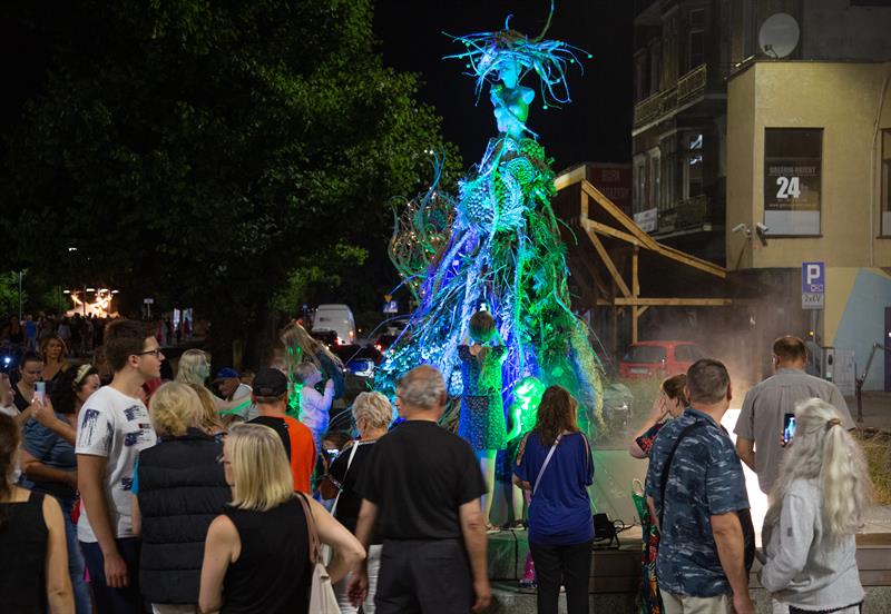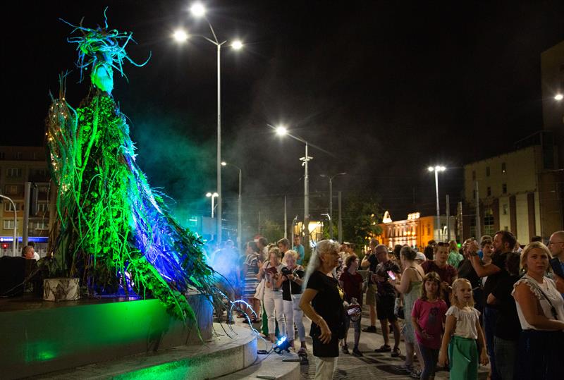 Z placu Lotników jest już blisko do placu Adamowicza. Tu powstanie kwietny rozświetlony projekt szczecińskiej pracowni Floral Concept Store, Kwiaciarnia „Pod Żółtą Różą”. Taka instalacja pojawiła się już w minionym roku i oczarowała mieszkańców miasta i turystów. Tym razem praca to połączenie kwiatowych dekoracji oraz elementów symbolizujących świat techniki. Postać, która powstanie w tym roku, odzwierciedla teraźniejszą kondycję człowieka – jego zawieszenie między światem natury, do którego należy, i światem sztucznej inteligencji.