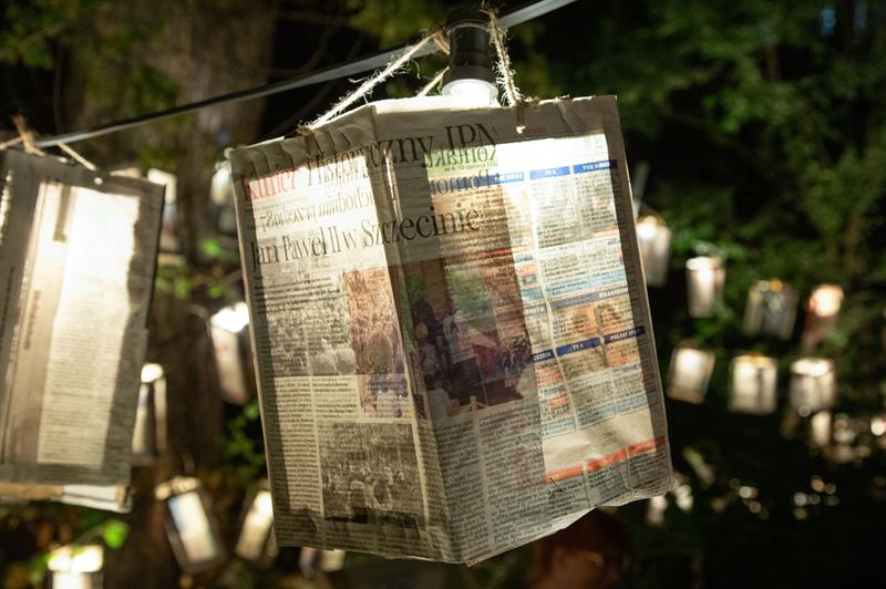 Na trasie wieczornego spaceru nie może zabraknąć placu Solidarności, gdzie stanie interaktywna instalacja najbardziej rozpoznawalnego artysty streetartowego w Polsce, czyli Piotra Pauka – Lumpa. Projekt składać się będzie z dwóch części. Pierwszą z nich stanowią stalowe litery zdemontowane z szyldu „ZAKŁADU USŁUG ŻEGLUGOWYCH”, które tworząc nowe hasło, nawiązują do historii Szczecina i stwarzają przestrzeń do refleksji. Drugim elementem jest huśtawka wagowa stworzona z sygnalizatorów świetlnych, która po wprawieniu w ruch oświetla napis.