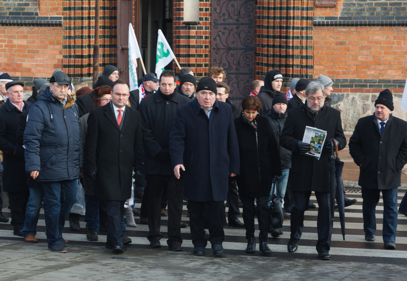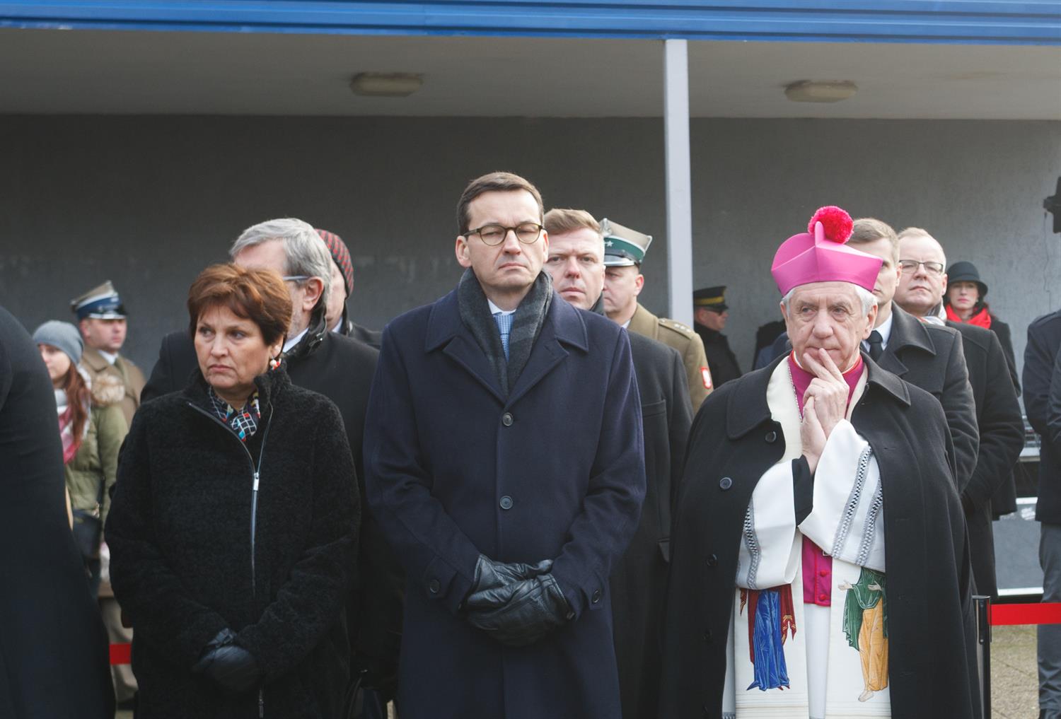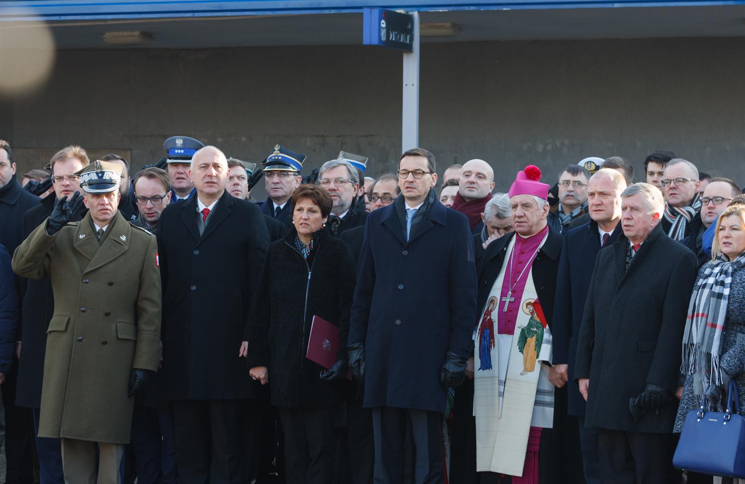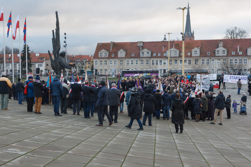 Prezesowi Rady Ministrów w niedzielę 17 grudnia towarzyszyli m.in. wicemarszałek Sejmu Joachim Brudziński, wojewoda zachodniopomorski Krzysztof Kozłowski, prezydent miasta Piotr Krzystek, parlamentarzyści, radni, związkowcy i dziesiątki szczecinian. - Spotykamy się tutaj, aby uczcić tych, którzy walczyli o prawdę, wolność i godność - stwierdził Mieczysław Jurek, przewodniczący Zarządu Regionu NSZZ Solidarność Pomorza Zachodniego - W 2013 roku sąd pierwszej instancji uniewinnił Stanisława Kociołka - kata Wybrzeża. Sąd Apelacyjny podtrzymał ten wyrok. Taka była trzecia Rzeczpospolita Polska, taki był wymiar sprawiedliwości. Władza pokazała wtedy swoje straszne, zbrodnicze oblicze, kurtyna opadła. Nie było już potem nigdy wątpliwości, czym jest ta władza, która mieniła się władzą robotniczą, a tak naprawdę była władzą antynarodową. Ale warto być Polakiem i walczyć o Polskę, która może być tuż tuż i może nadejść szybciej, niż nam się wydaje. Poeta mówił: "wolność krzyżami się mierzy ". Te krzyże przy bramie stoczni, to krzyże wolności i cierpienia. Jesteśmy tym krzyżom winni wierność. To wolna, silna i sprawiedliwa Polska - mówił Mateusz Morawiecki, premier rządu RP. - 17 grudnia 1970 roku, to tragiczna data w historii Szczecina. Ciągle stawiamy sobie pytanie: czy musiało do tego dojść? Czy na słuszne żądania władza może odpowiadać kulami? To był protest zwykłych ludzi. A prymitywna propaganda nie mogła przykryć rzeczywistości. Ludzie szli, bo chcieli lepszej przyszłości dla siebie i swoich dzieci. Z ich protestu zrodził się Sierpień "80. Ich ofiara nie może pójść na marne. A my dziś możemy z dumą patrzeć na szczecińską drogę do wolności - powiedział Piotr Krzystek, prezydent Szczecina. Po przemówieniach zaproszonych gości metropolita szczecińsko - kamieński abp Andrzej Dzięga celebrował modlitwę Anioł Pański. Odbył się apel poległych i złożono kwiaty pod tablicą upamiętniającą ofiary szczecińskiego Grudnia 70. Następnie uczestnicy uroczystości przeszli w Marszu Pamięci przed pomnik Anioła Wolności na placu Solidarności. (dar)