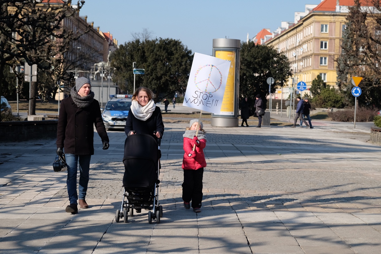 Takie też były motywy udziału w szczecińskiej manifestacji Joanny Jankowskiej oraz jej córki Zosi (7 l.). Przyniosły transparent: „STOP wojnie!!!", ubarwiony dziesiątkami kolorowych kwiatów, układających się w pacyfę.