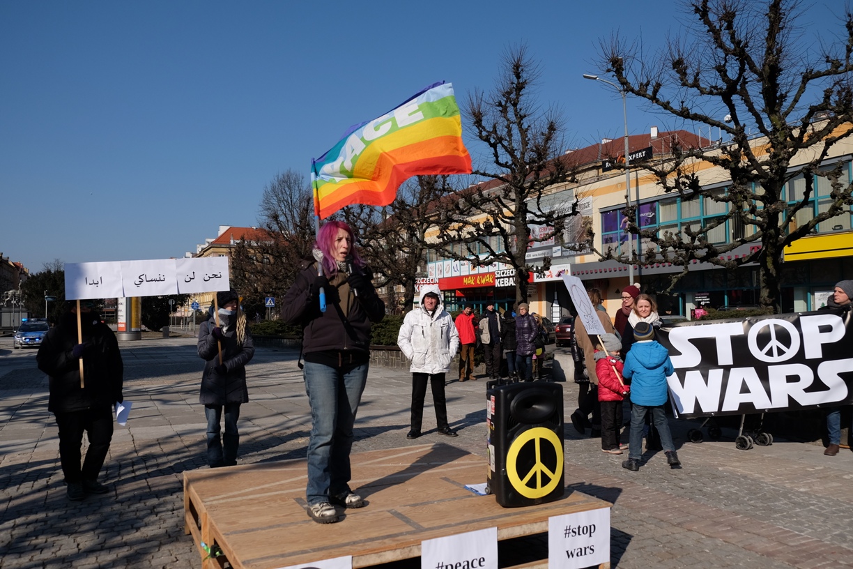 Sobotnią manifestację ph. Stop WARS zorganizowały szczecinianki i szczecinianie, m.in. z Basta! Inicjatywy na Rzecz Zwierząt, ruchu Dziewuchy dziewuchom oraz Food Not Bombs, Kongresu Kobiet, stowarzyszenia Refugees, Ośrodka Teatralnego Kana. Uczestniczyło w niej niespełna 100 osób. ©℗