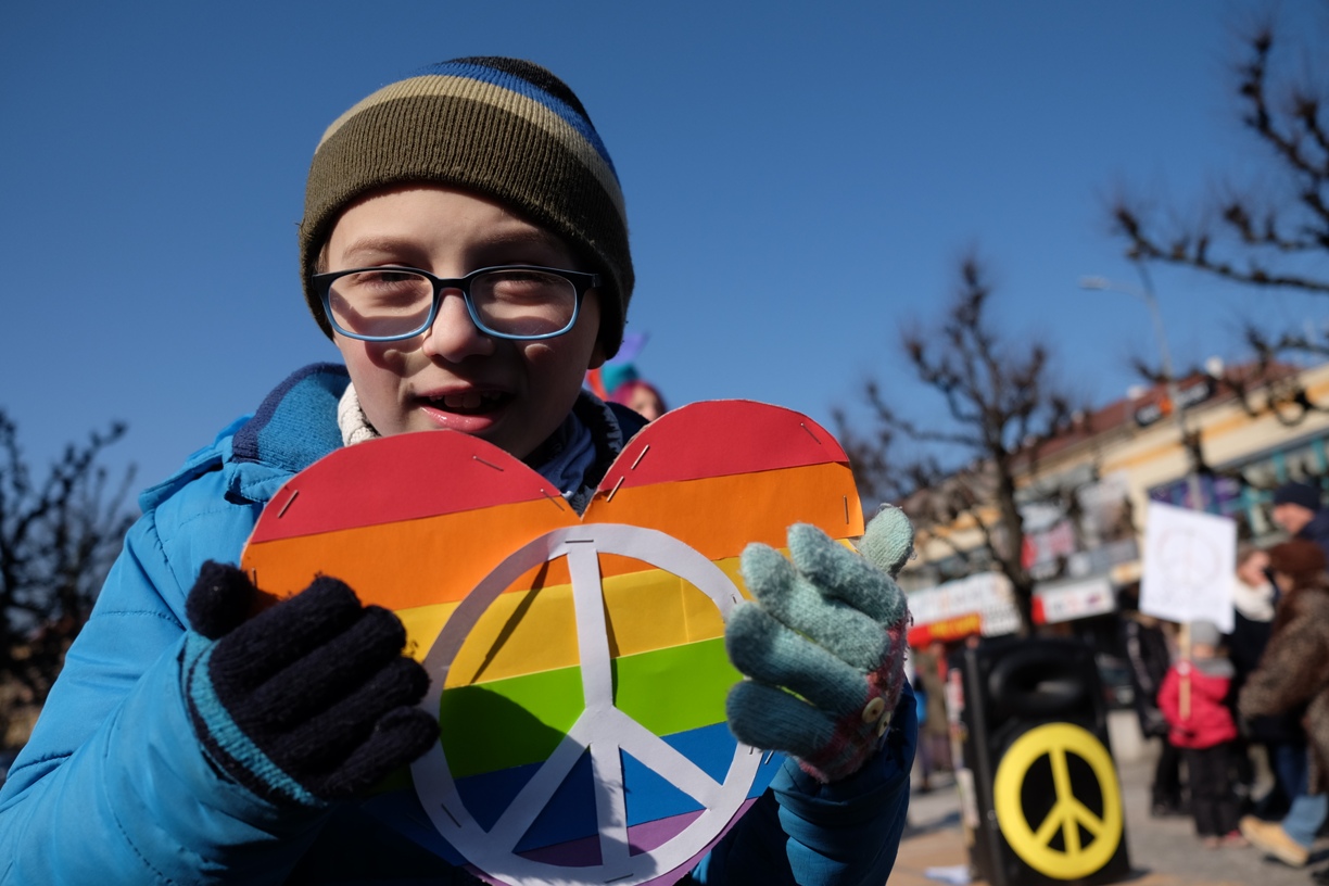 - Wspólnie go malowałyśmy ten symbol pokoju, bo daje nadzieję. A my ją mamy. Wierzymy, że w końcu uda się skończyć z wojnami - opowiadała p. Joanna. - Czułyśmy, że musimy tu przyjść. Bo to nasz obowiązek jako ludzi. Nie potrafimy tylko siedzieć i patrzeć. Myślę, że gdyby więcej nas podniosło się z kanap, to wspólnie solidarnie mielibyśmy siłę, aby zaradzić złu: agresji, przemocy, wojnom.