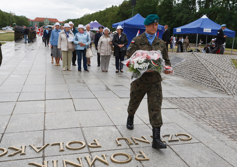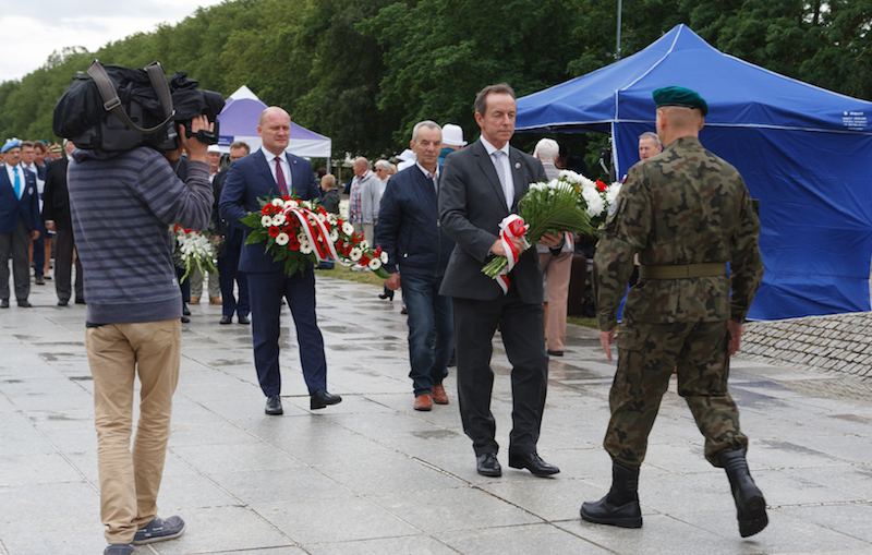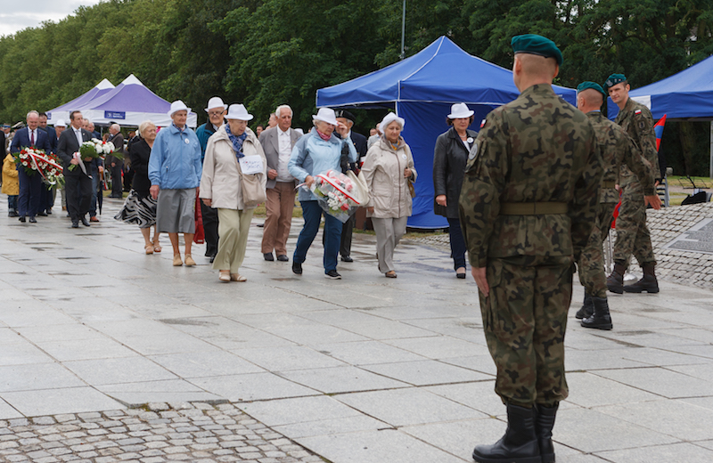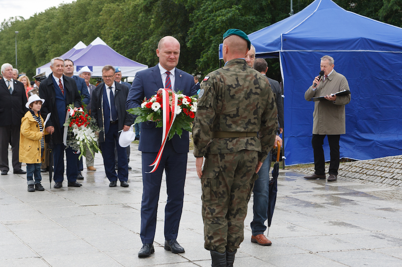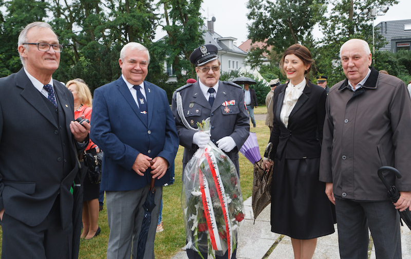 Uczestnicy uroczystości wzięli udział w modlitwie odprawionej przez abp. Andrzeja Dzięgę. Następnie goście honorowi złożyli kwiaty pod pomnikiem i... znów zaczynał padać wtedy deszcz. Po zakończeniu części oficjalnej kilka znanych utworów zagrali „Srebrzyści Akordeoniści”, a zgromadzeni zostali zaproszeni na drugą część obchodów w niedzielę.