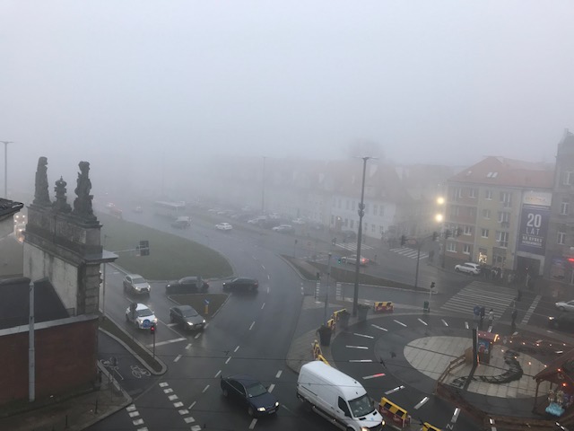 We wtorek po południu Szczecin, podobnie jak wiele innych miejsc w regionie, spowiła gęsta mgła. Widoczność jest dość mocno ograniczona, co znacznie pogarsza warunki drogowe.