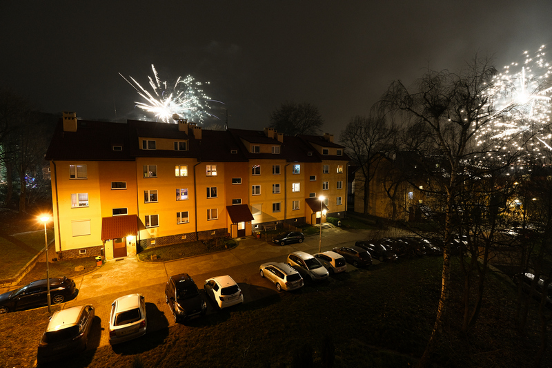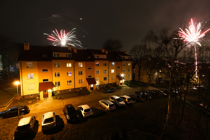 Wyjątkowo skromnie tym razem powitano Nowy Rok w szczecińskich Podjuchach. To świętowanie w całym kraju odbywało się w wyjątkowych okolicznościach - z obostrzeniami związanymi z pandemią. Bez masowych imprez, ale jednak z fajerwerkami odpalanymi przez samych mieszkańców miast. W bardziej zaludnionych osiedlach były dużo bardziej widoczne.