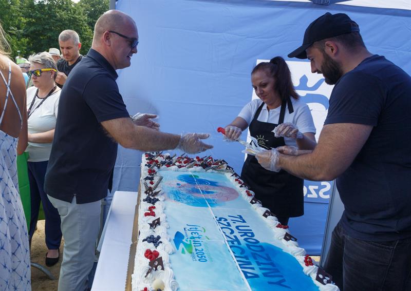 Nim jednak rozpoczęto krojenie tortów, licznie przybyłych mieszkańców Szczecina przywitali Piotr Krzystek, prezydent Szczecina i Renata Łażewska, przewodnicząca Rady Miasta.