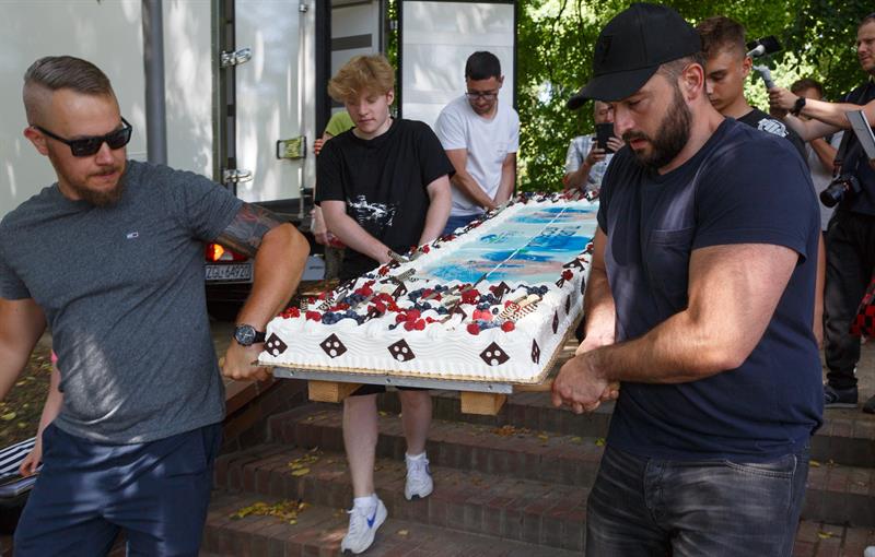 W 77. urodziny Szczecina nie mogło być inaczej - urodzinowe torty miały po 77 kg. Miały, bo w tym roku przygotowano aż dwa takie wypieki. Śmietankowe, z owocami, ok. 2-metrowej długości. Choć rozpoczęcie poczęstunku zaplanowano na godz. 12, kilkusetosobowe kolejki ustawiały się na długo przed tą godziną.