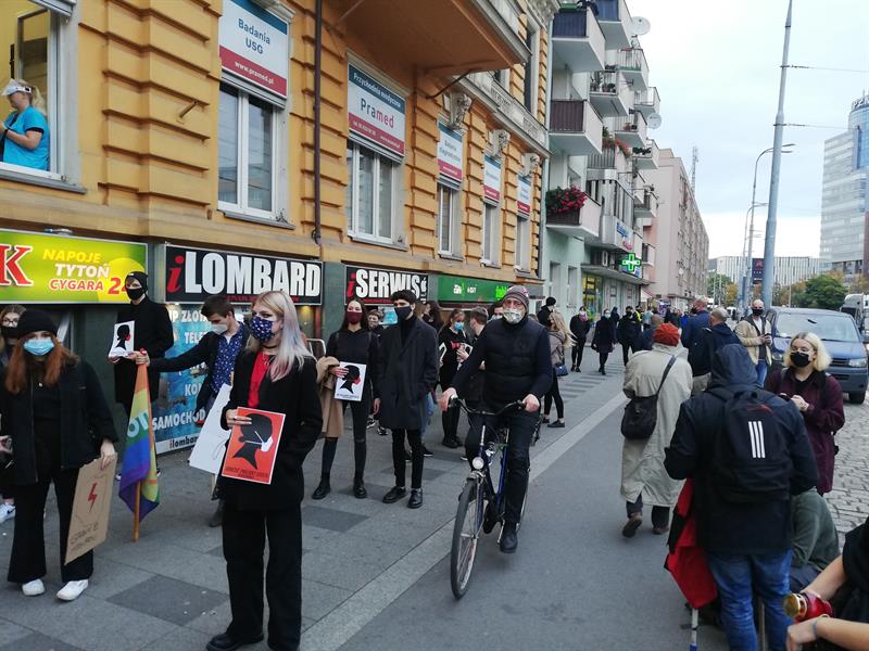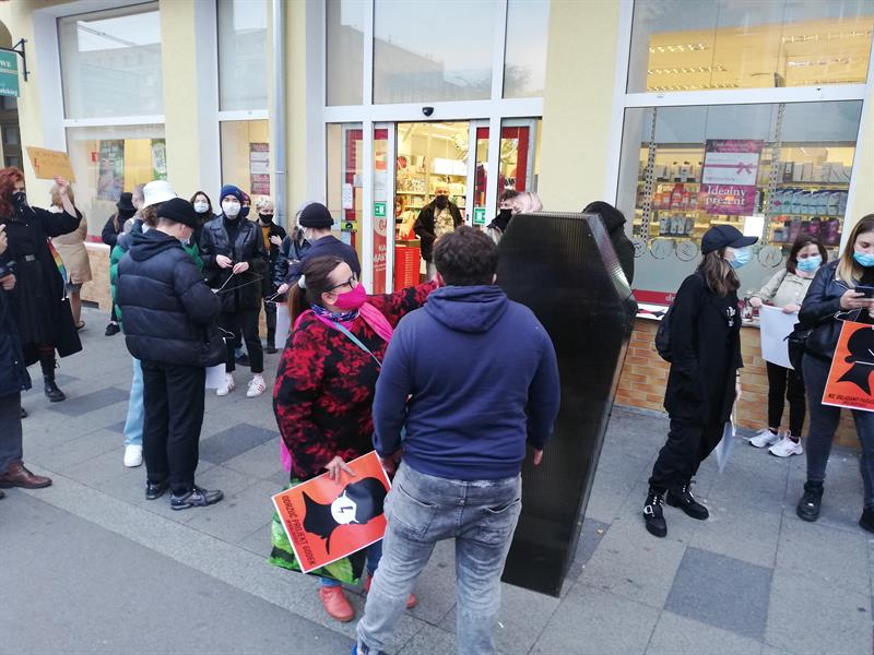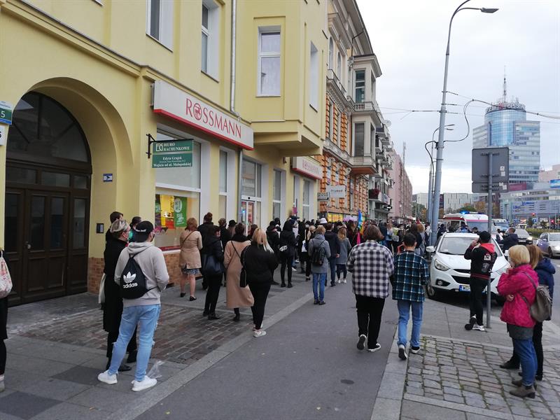 Piątek (23 października) na ulice miast znów wyszli obywatele. Tym razem na wezwanie Wielkiej Koalicji za Równości i Wyboru, skupiającej ponad 100 organizacji kobiecych walczących m.in. prawa reprodukcyjne kobiet. W Szczecinie już przed godz. 16 ustawili się w kolejce przed jednym ze sklepów (Rossmann) w al. Wyzwolenia, obok którego mieści się biuro poselskie Prawa i Sprawiedliwości: Joachima Brudzińskiego (PE), Leszka Dobrzyńskiego i Marka Gróbarczyka.