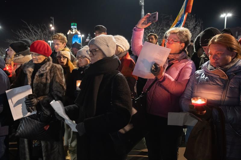 Ludzie w skupieniu słuchali przemówień, m.in. Ingi Iwasiów. Odczytano wiersz Wisławy Szymborskiej pt. "Nienawiść". Wielu uczestników trzymało znicze i białe róże. Wzniesiono również "światełko do nieba" ku pamięci zamordowanego prezydenta. Pod koniec mieszkańcy złożyli znicze i kwiaty pod pomnikiem Anioła Wolności.
