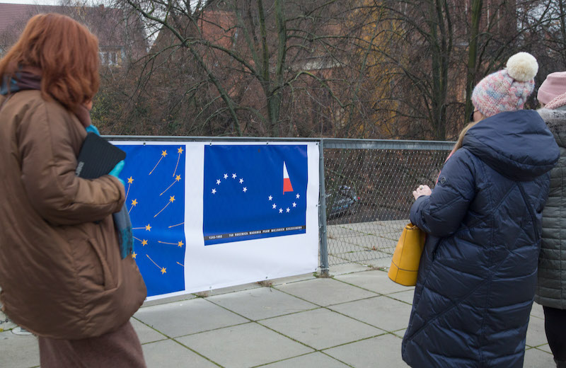- Jako młody chłopak z liceum, byłem tu i obserwowałem co się stało. Widziałem choćby spalony budynek partii. Wieczorem zaczęto do nas strzelać, zatem uciekaliśmy, gdzie pieprz rośnie. Mnie się udało uciec w kierunku ulicy Mariackiej. Ale ktoś przede mną miał mniej szczęścia, bo widziałem na chodniku krwawy ślad buta. Zapewne ta osoba została postrzelona - opowiadał plakacista. - To taka historyczna inspiracja wystawy, ale taką ogólną było to, że bardzo wielu Polaków jest przeciwnikami integracji z Unią Europejską. Słyszy się nawet czasem, że Unia to drugi Związek Radziecki. Jedynym wytłumaczeniem takiego myślenia może być fakt, że mówią takie słowa osoby młode. Ci ludzie nie mają pojęcia czym był Związek Radziecki, czym było życie w tamtych czasach, również w zachodniej Polsce i w Szczecinie.