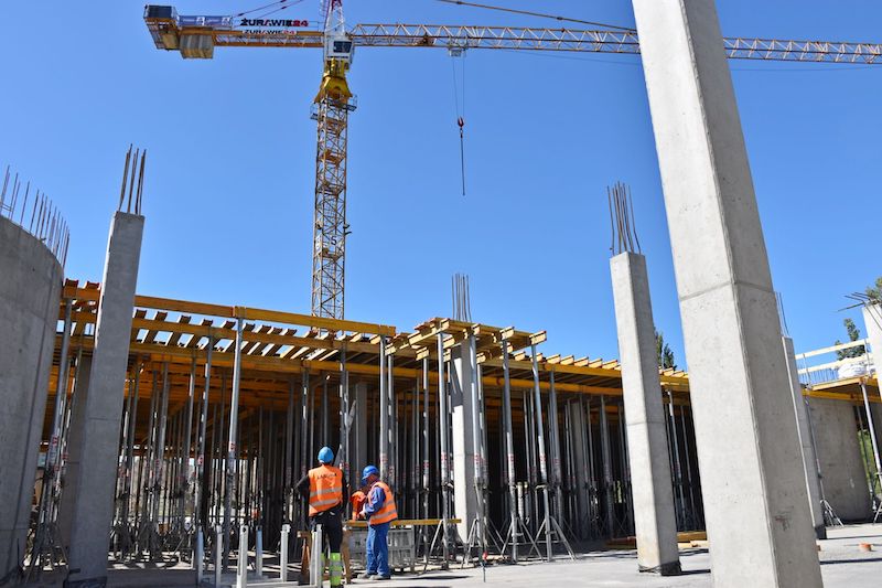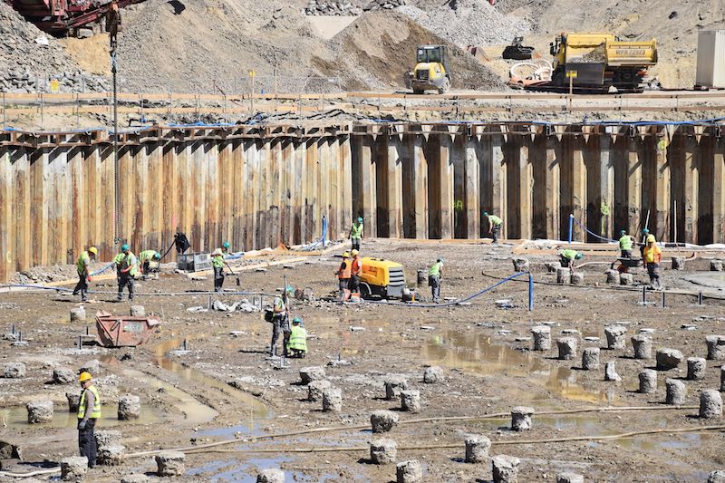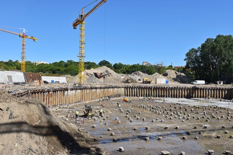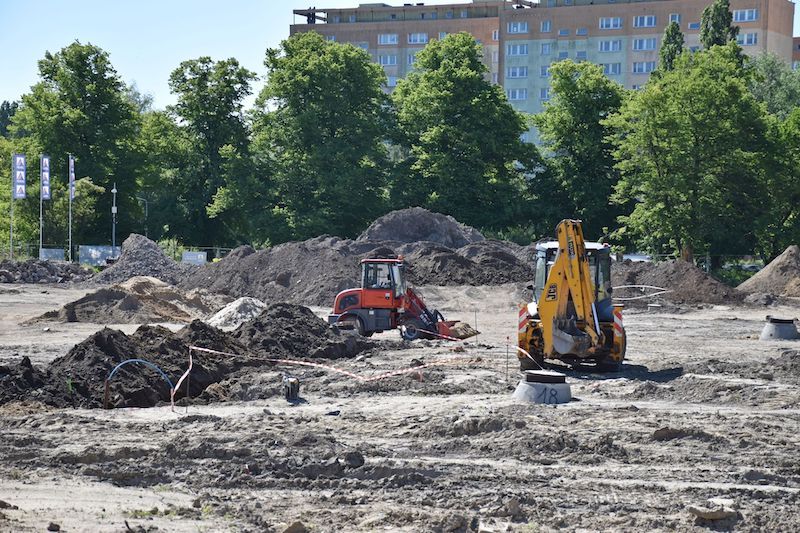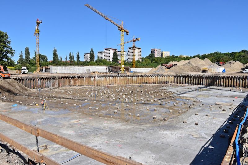 Na budowie szczecińskiego aquaparku nie zwalnia tempo robót. Trwają przygotowania do fundamentowania budynku basenowego. W górę pnie się przyszłe Edukatorium.