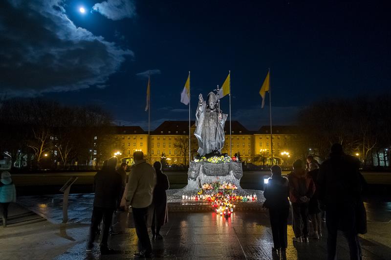 Szczecinianie często gromadzą się pod pomnikiem Jana Pawła II, oddając hołd świętemu. Fot. Dariusz GORAJSKI