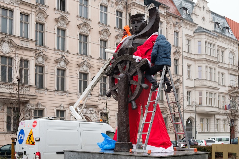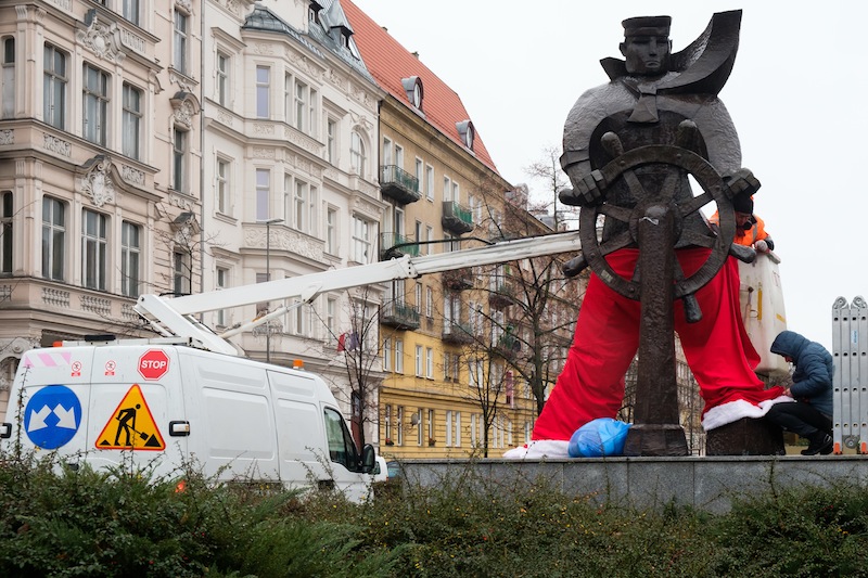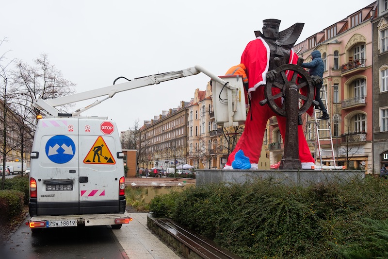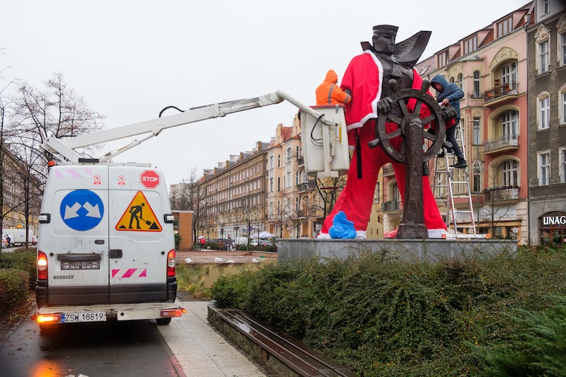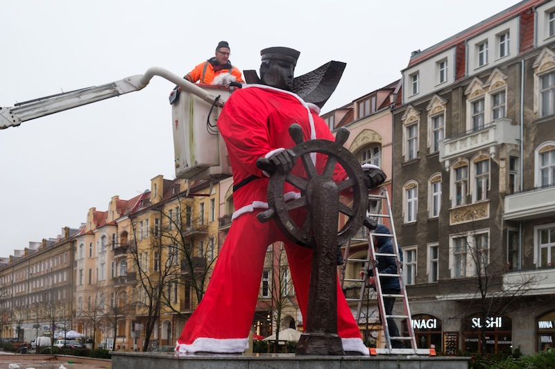 Święta coraz bliżej. Wprawdzie Jarmarki Bożonarodzeniowe jeszcze nie działają, ozdoby na latarniach jeszcze nie świecą, ale w centrum Szczecina pojawił się tradycyjny akcent, którego trudno nie zauważyć. Pomnik marynarza, stojący przy pl. Grunwaldzkim, przy wjeździe w aleję fontann, od środy ubrany jest w strój św. Mikołaja.