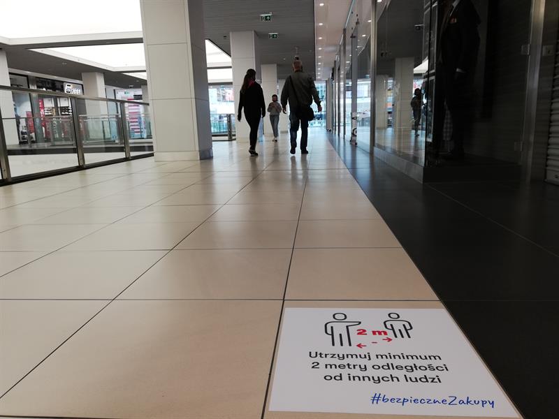Od poniedziałku 4 maja po przerwie ponownie otwarto centra handlowe. Obowiązują w nich wytyczne i zalecenia sanitarne - m.in. trzeba zakrywać usta i nos, przed wejściem do sklepów dezynfekować ręce, zachować dystans w kolejce do kas. Nadal zamknięte są kina i siłownie, salony fryzjerskie, sale zabaw, a gastronomia działa tylko na wynos.