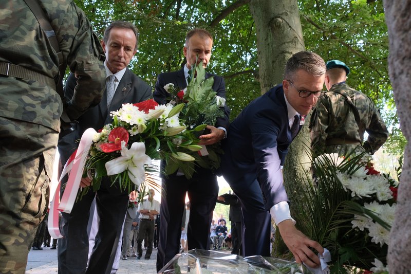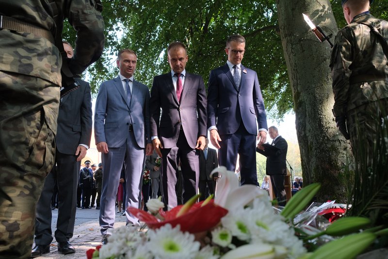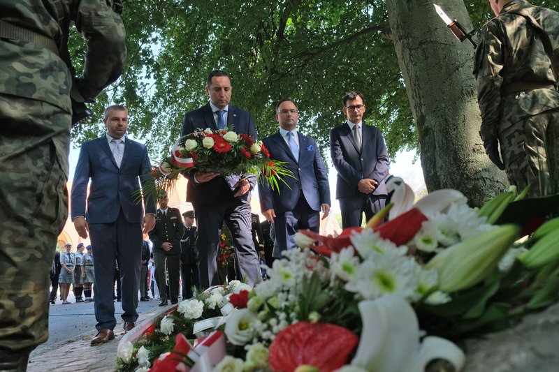 Kwiaty pod pomnikiem złożył w imieniu mieszkańców prezydent Szczecina Piotr Krzystek, przypomniał również jak ważna jest pamięć o bohaterach oraz o tamtych wydarzeniach. Na cześć poległych bohaterów w 80. rocznicę wybuchu II wojny światowej wojsko oddało salwę honorową.
